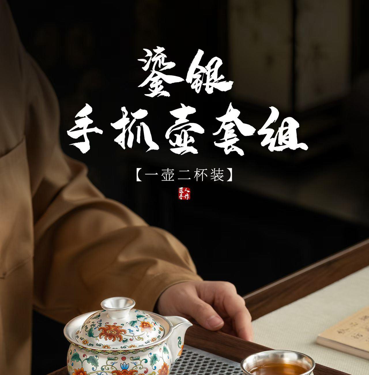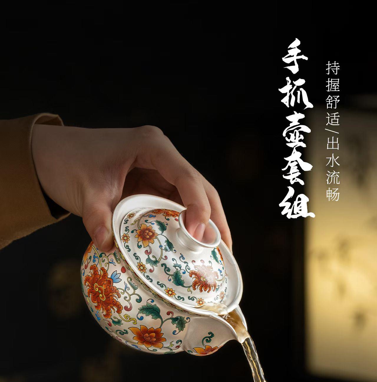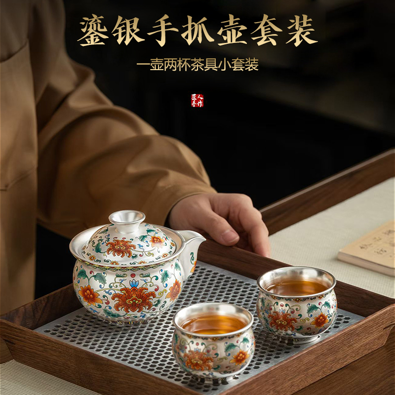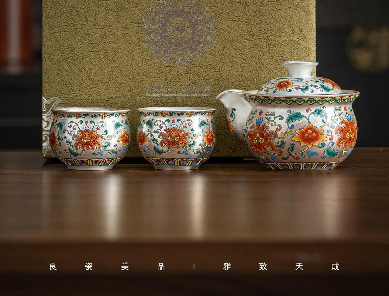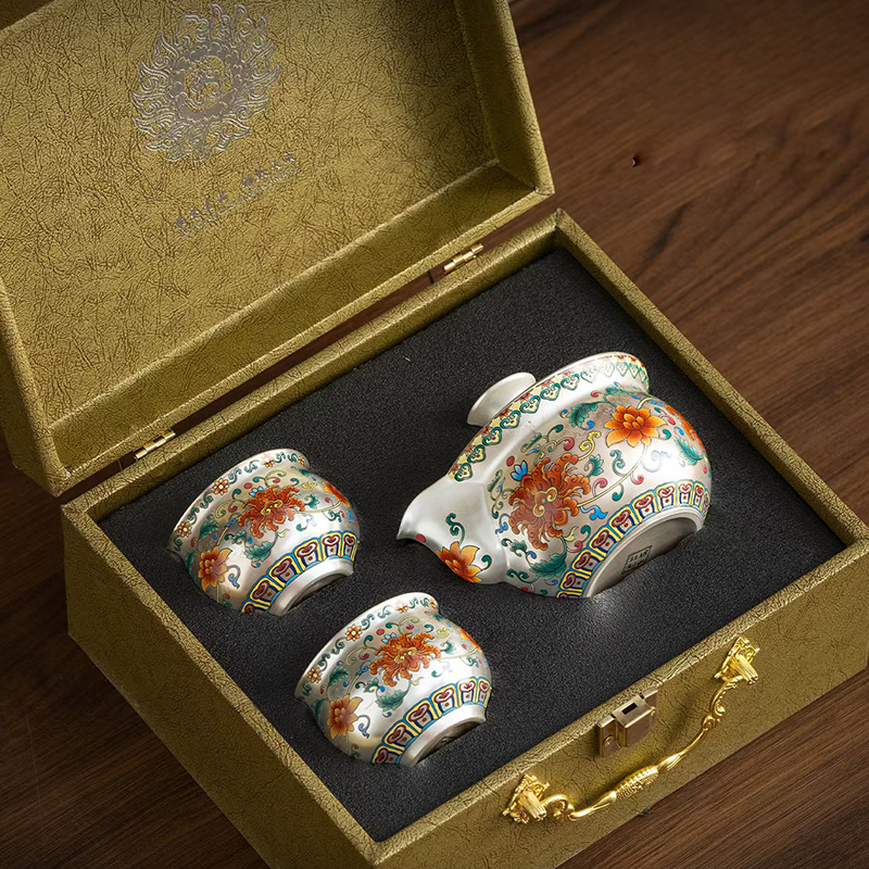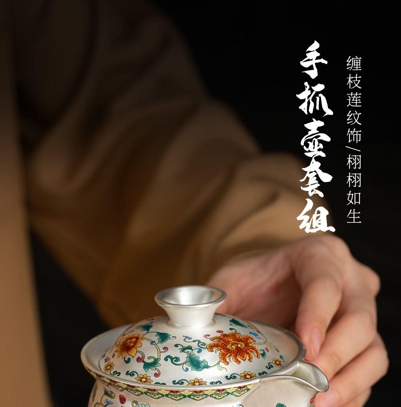尾桥下窑鎏银缠枝莲一壶两杯文创茶具套装商务节日乔迁伴手礼
