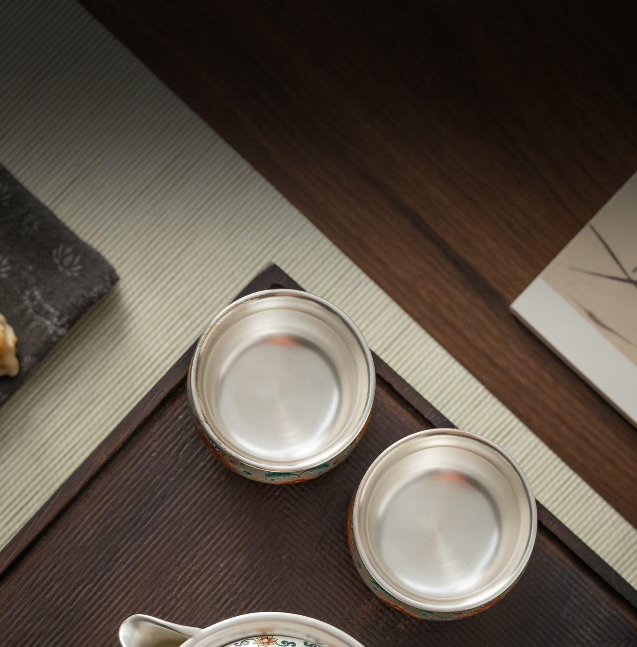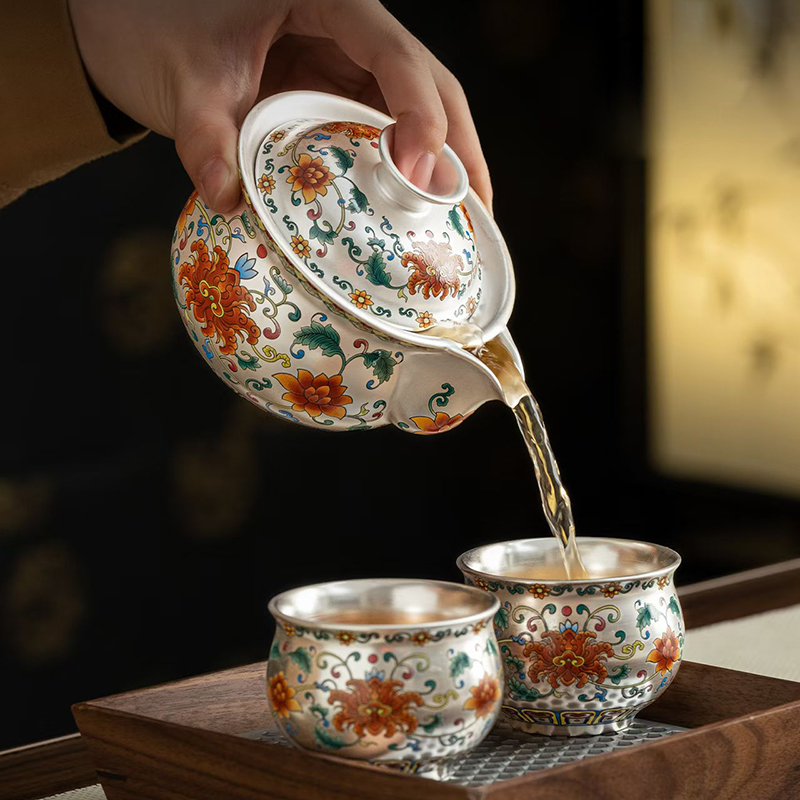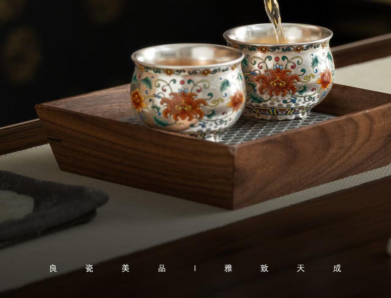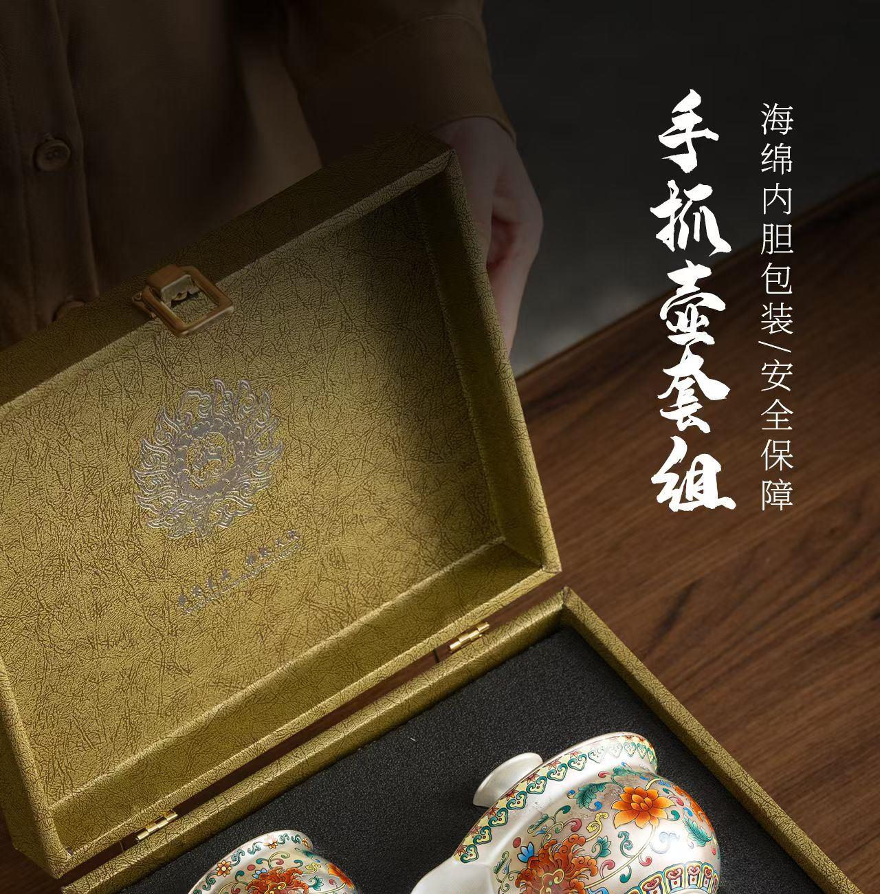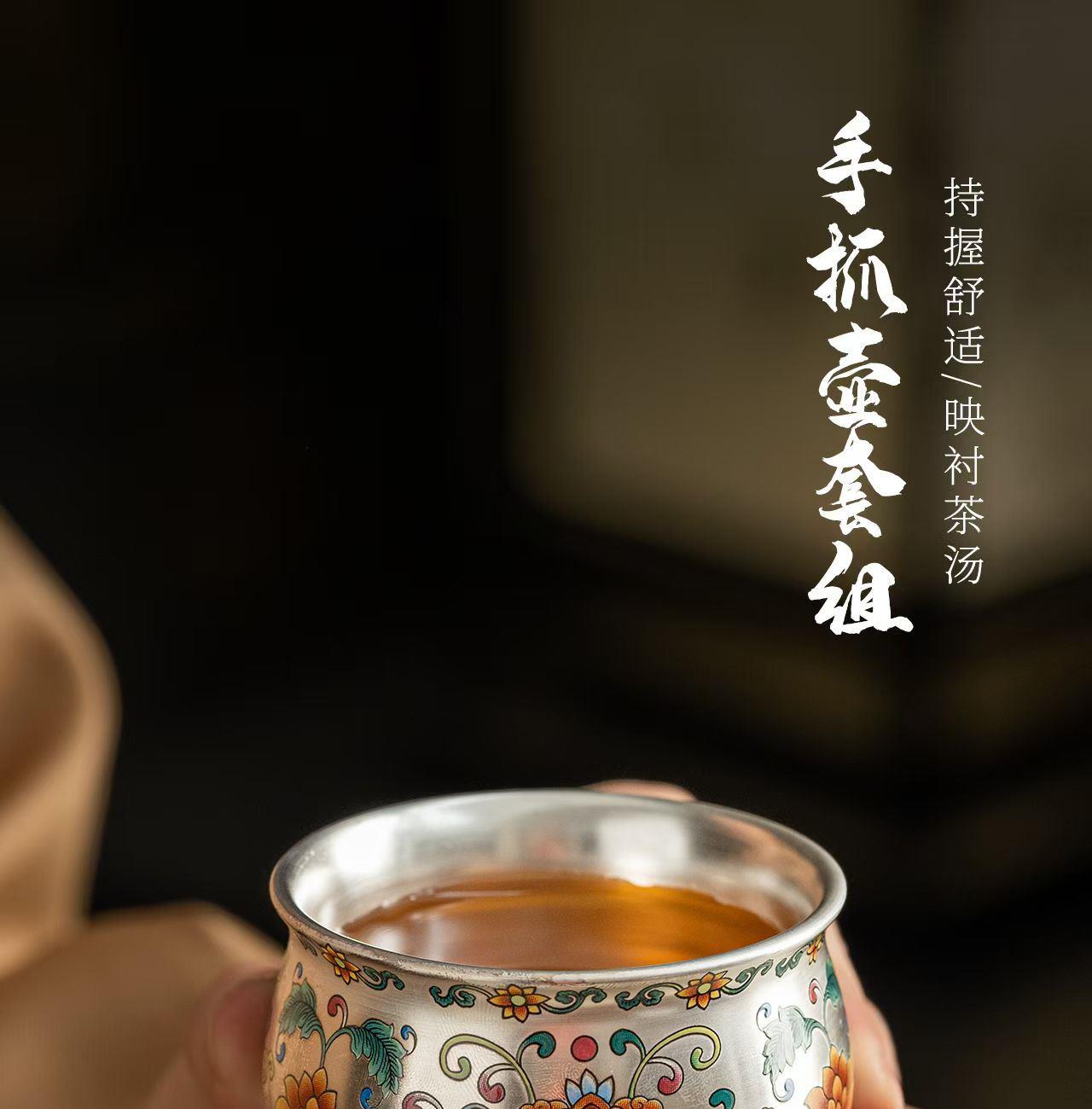 尾桥下窑鎏银缠枝莲一壶两杯文创茶具套装商务节日乔迁伴手礼
