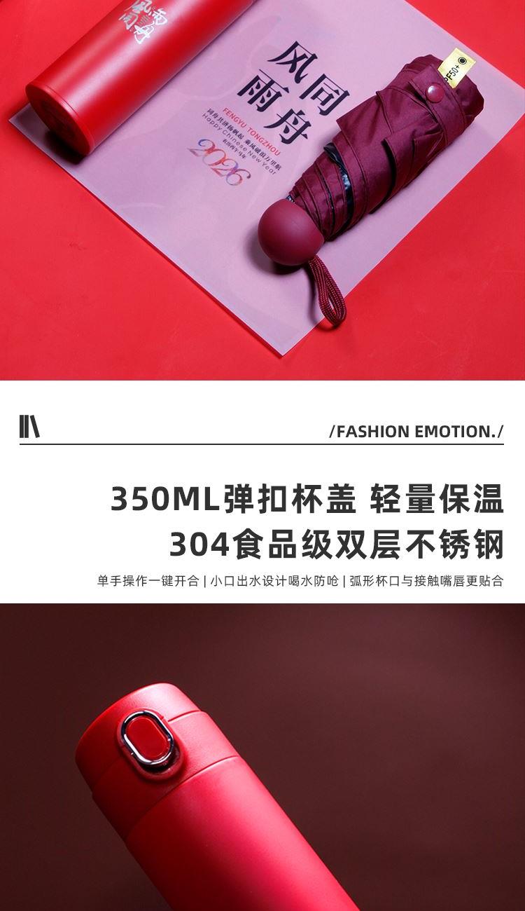 名仕保温杯350ML*1 颜色:红色/白色 胶囊雨伞*1颜色可以选 精装礼盒*1 手提袋*1