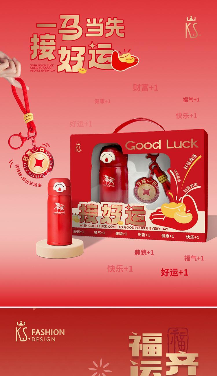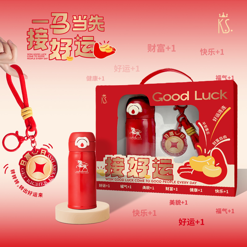 寓意美好,好运加持:以“接好运”为主题,搭配“日富一日”转运钥匙扣,蕴含财富、好运、快乐等多重美好祝愿,传递积极寓意。 颜值与实用兼备:红色系礼盒设计喜庆吸睛,保温杯实用便携,钥匙扣可作挂饰,既是实用好物也是时尚配饰。 以下代发价不含偏远地区:黑龙江、吉林、内蒙古、青海、云南、宁夏、海南、贵州、甘肃、新疆,(西藏地区按官网核价)
