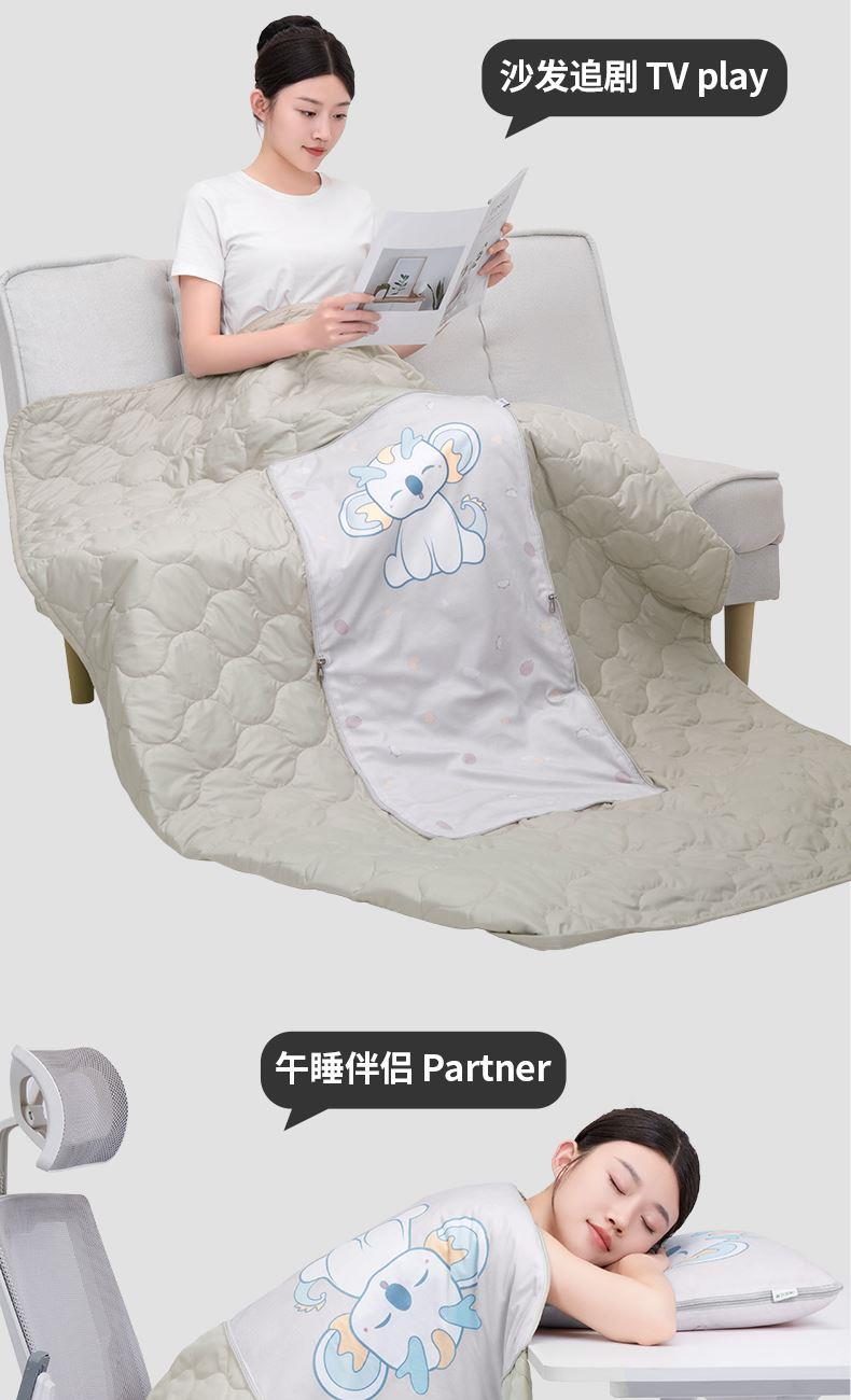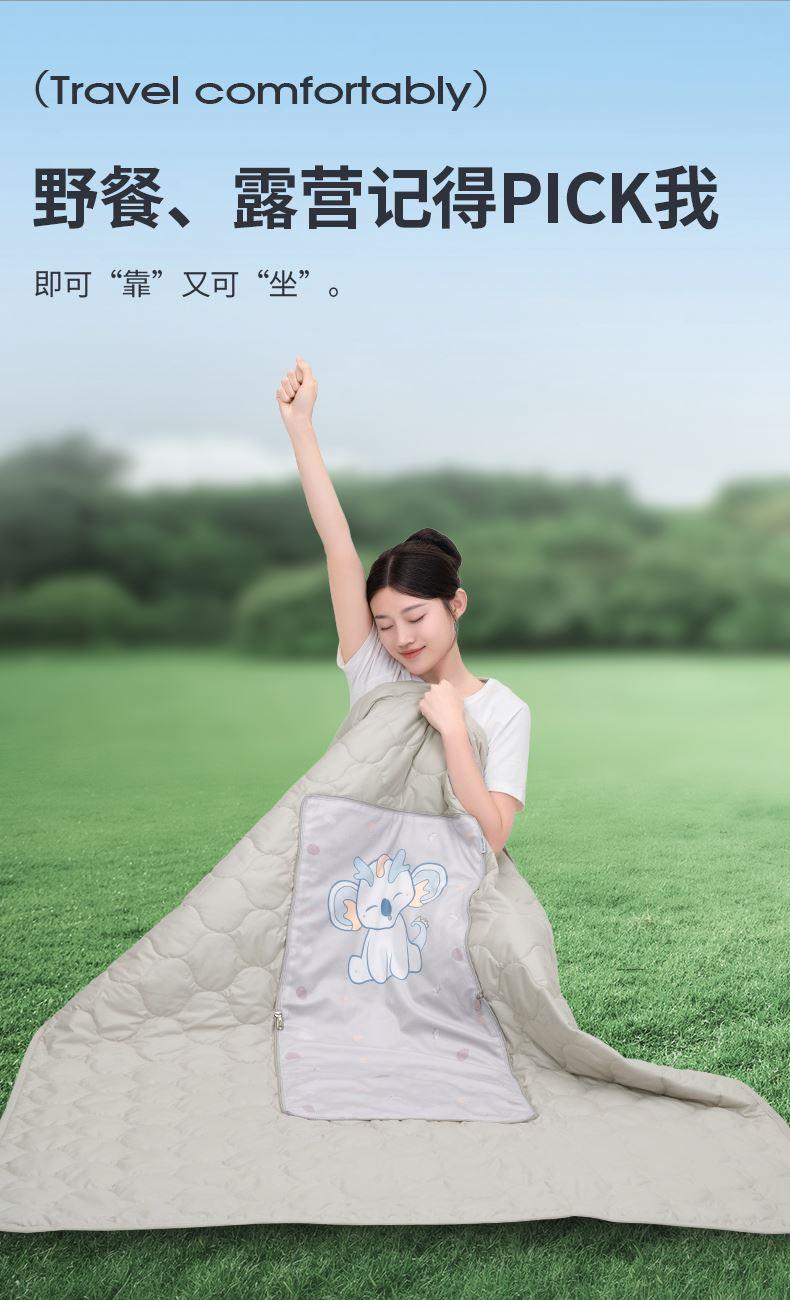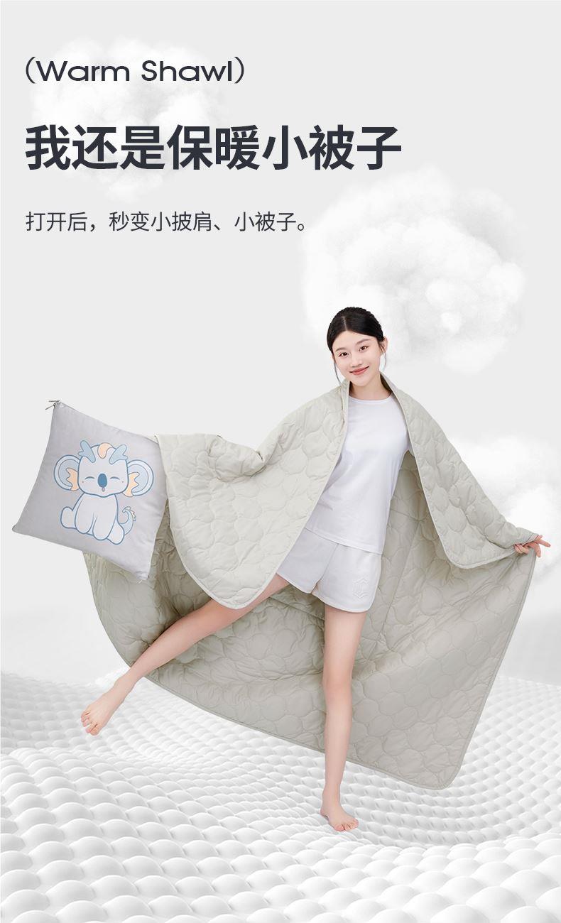 抱枕被:①双车精密绗缝工艺,300+个绗缝格牢牢固定被芯,不易跑棉不易变形 ; ②打开秒变小被子,轻盈保暖,秋冬抵御寒气,夏天可当空调被使用; ③宅家、办公都适用,秒变小披肩,空调房必备 眼罩:①4重遮光材质 ②S型鼻翼 不怕漏光 U枕:①环形支撑护颈 旅行便携 ②够轻够便捷 舒服不压颈 ③多种场景 都可以戴上它