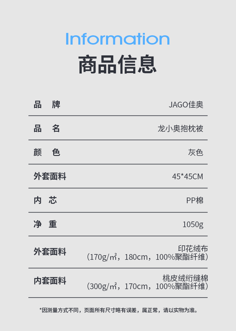 佳奥套装抱枕被小号+眼罩+u型枕套装