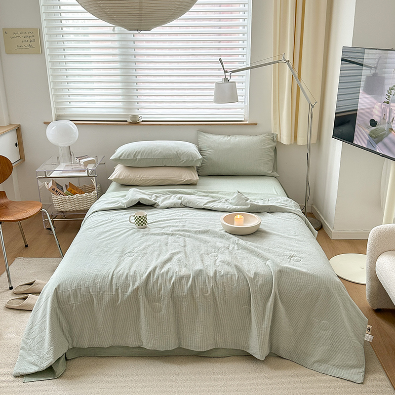 生活元素绿密条色织全棉夏被(1.5M)SZ-3018B