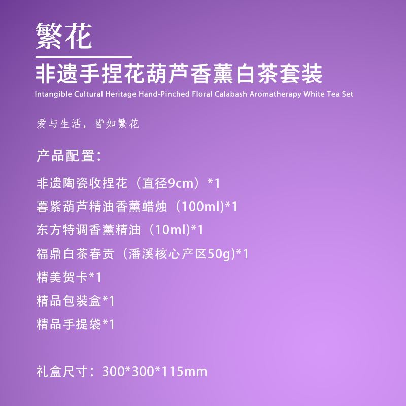 茶汀繁花非遗手捏花葫芦香薰白茶套装