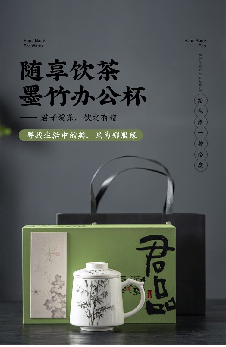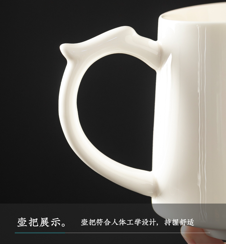 云博陶瓷节节高升办公杯过滤水杯马克杯茶水分离杯羊脂玉瓷伴手礼