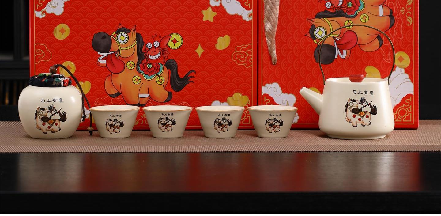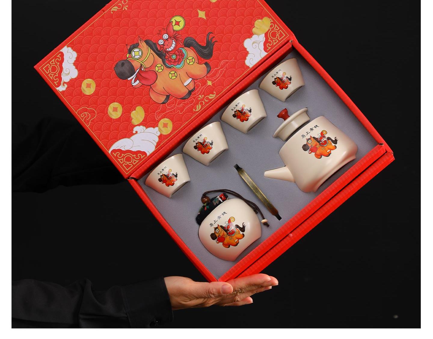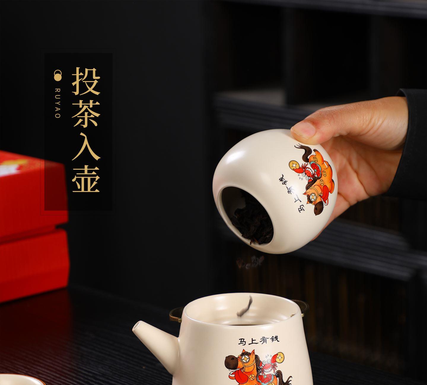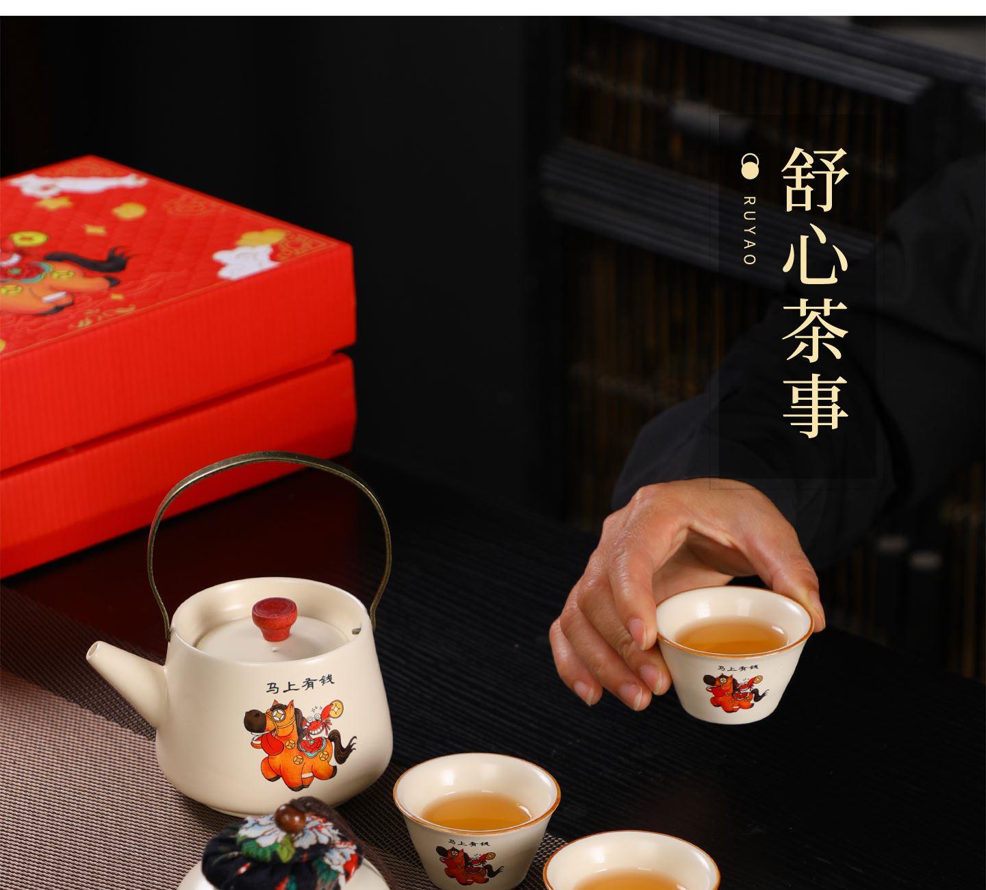 瓷语花香开门红马上有福汝窑茶具套装