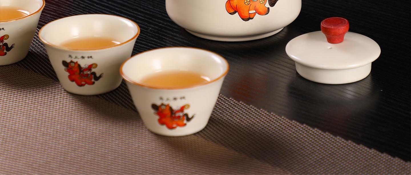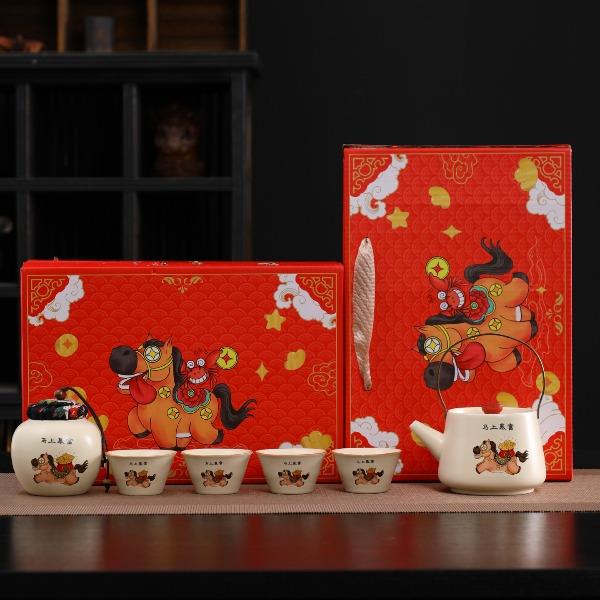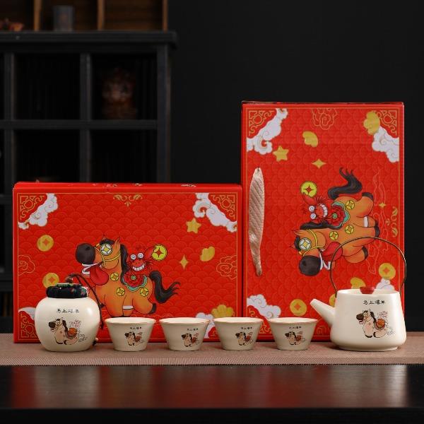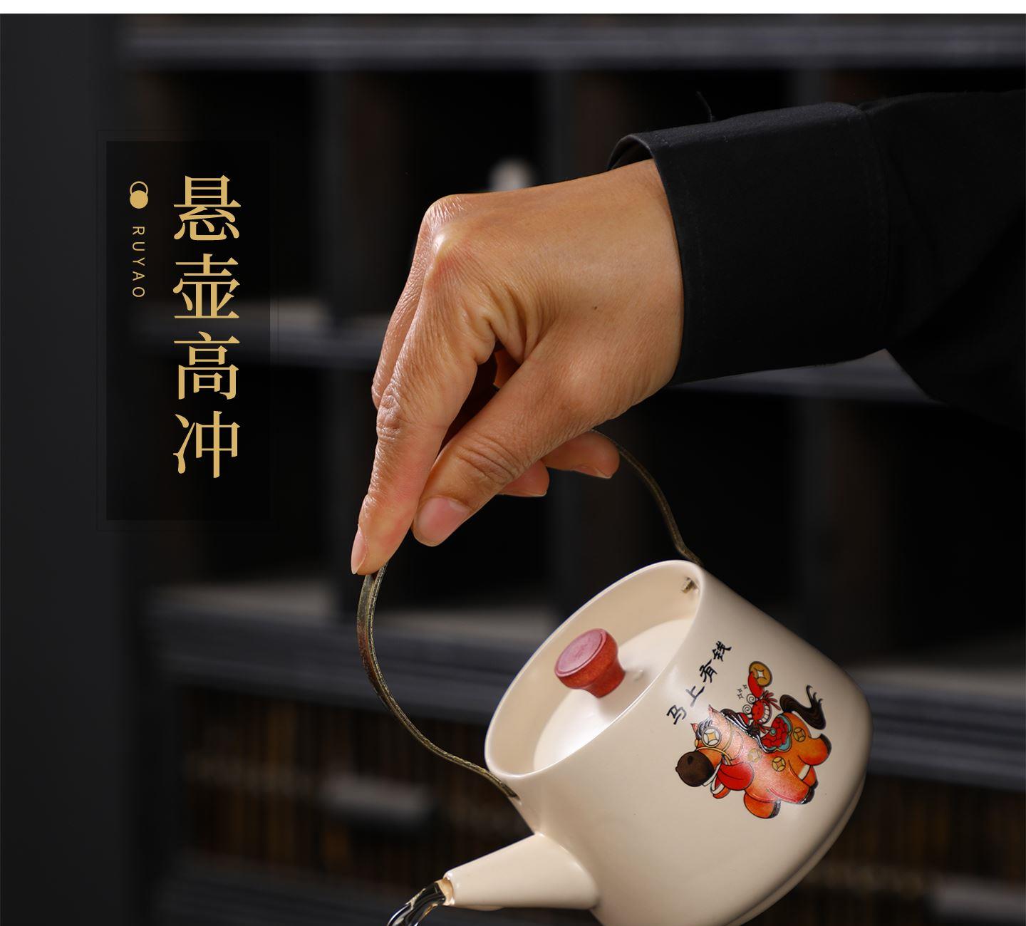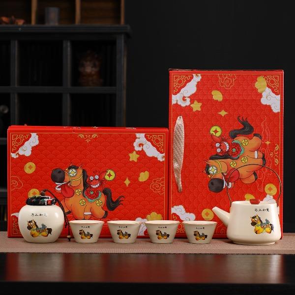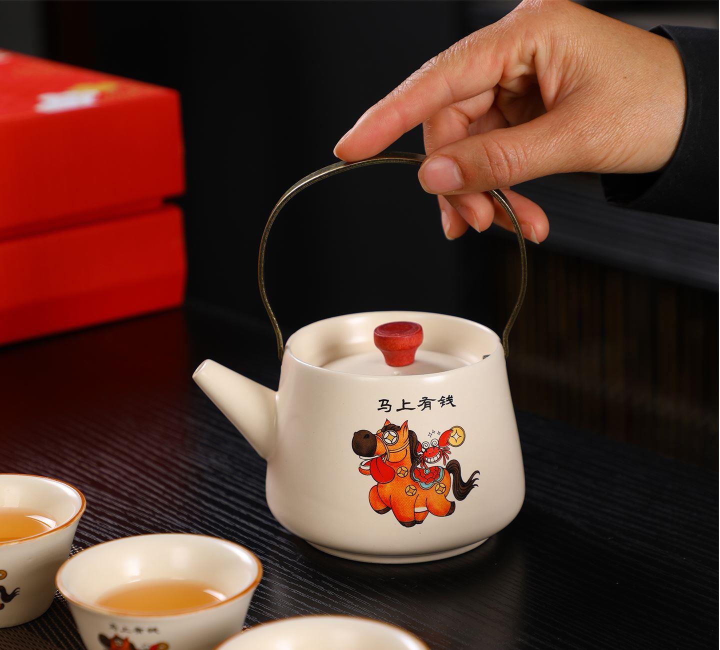 瓷语花香开门红马上有福汝窑茶具套装