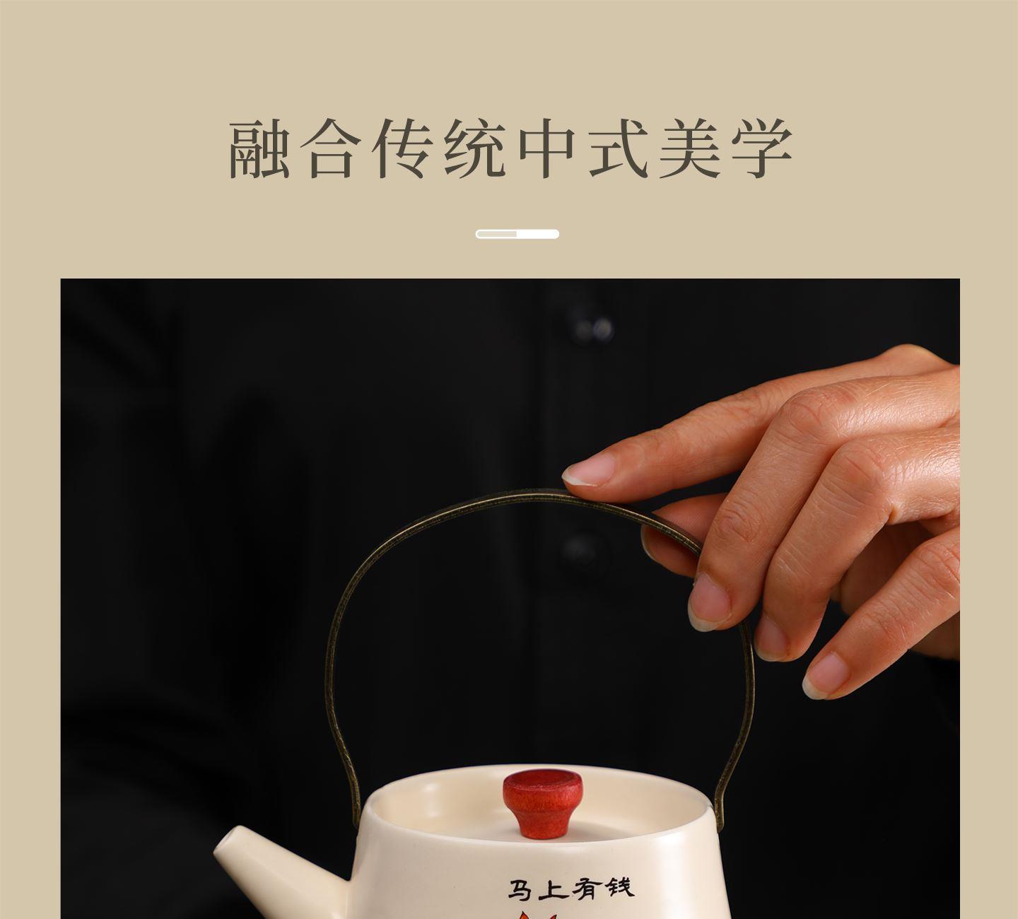 提梁壶:13.5*11.5厘米225ml 品茗杯:6*3.5厘米60ml 礼盒:30*20*12厘米 天然矿物釉,高温烧制无铅镉 ,包装礼盒轻奢新颖,搭配礼盒包装,自用赠礼两宜,用陶瓷的温润,调和生活的棱角。