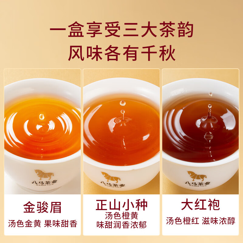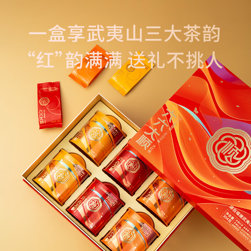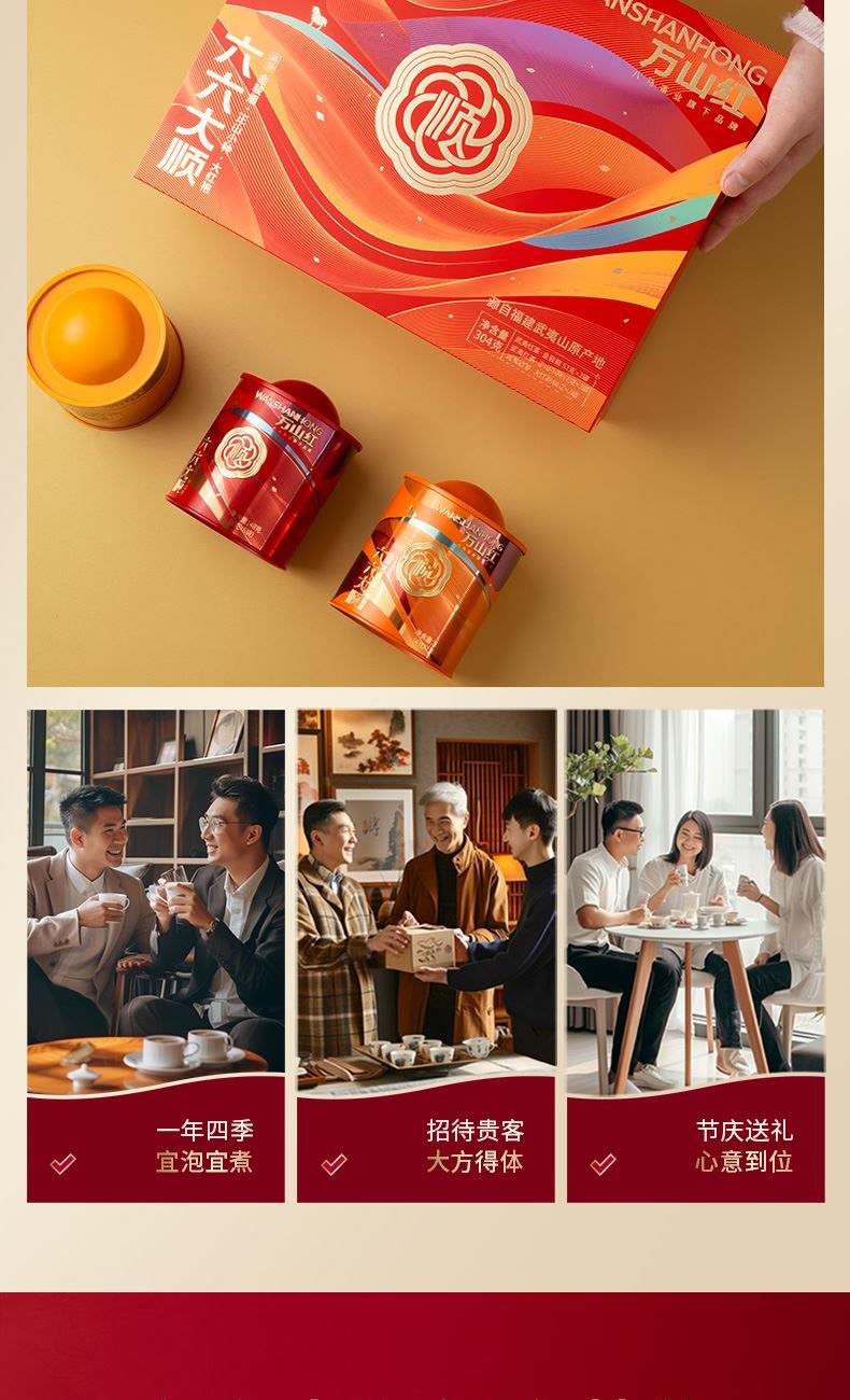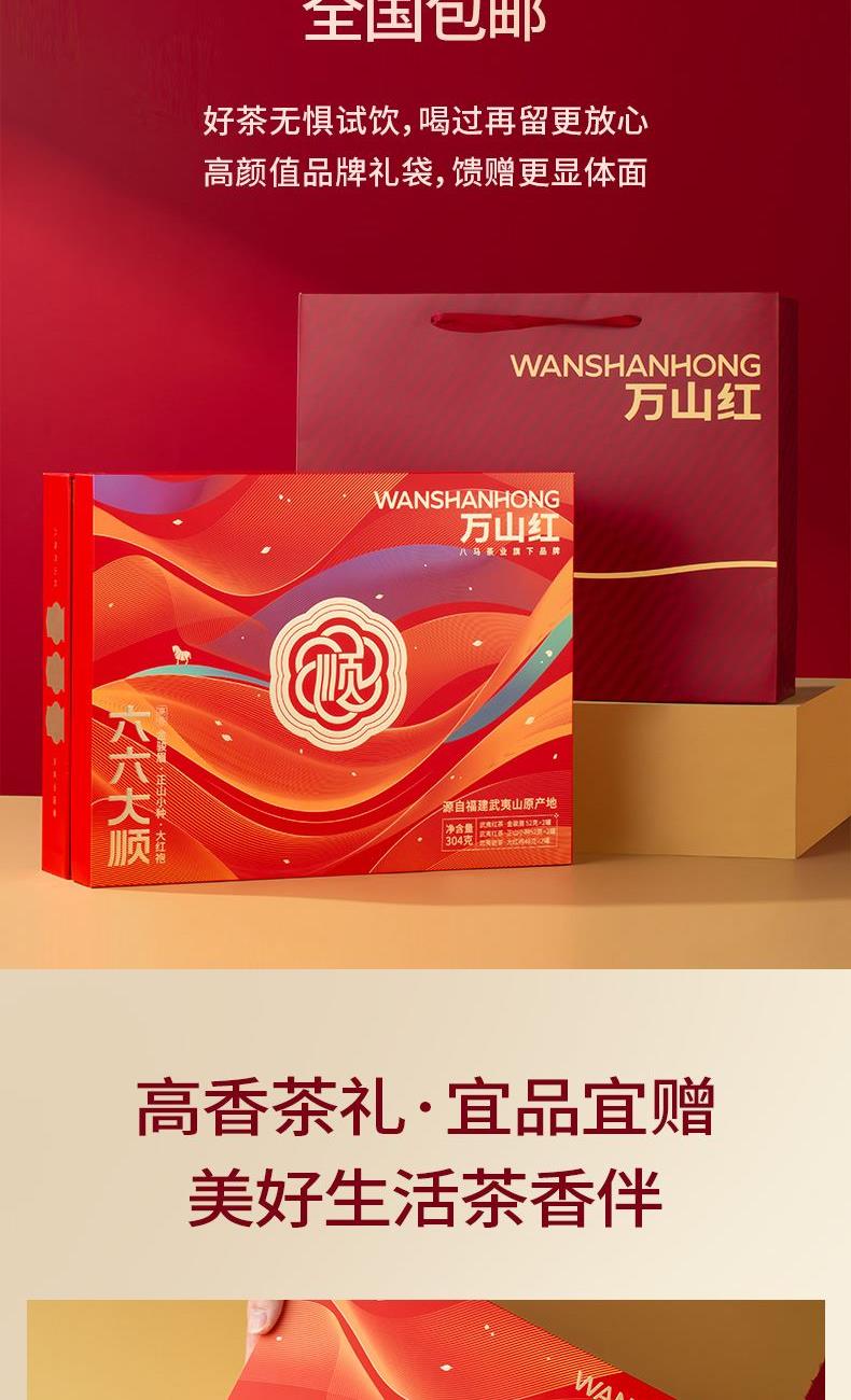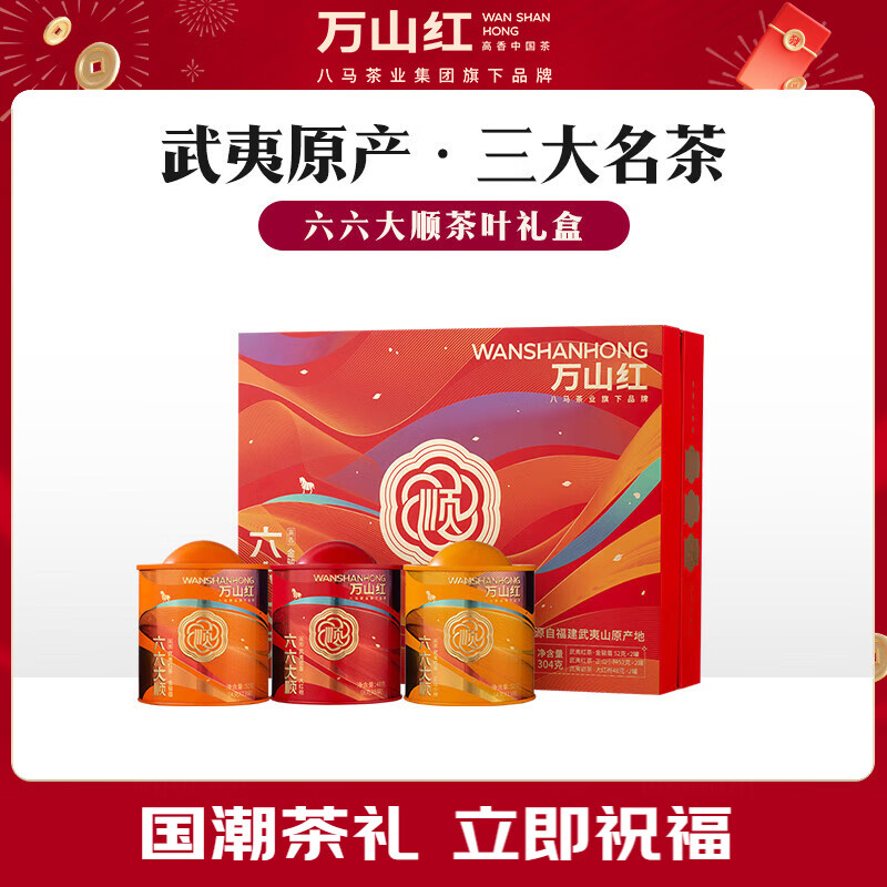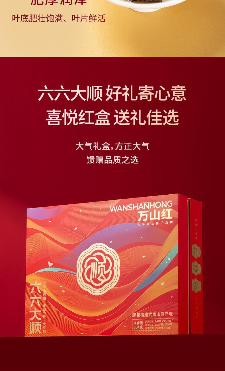净含量:304克 大红袍48克X2罐; 金骏眉52克X2罐; 正山小种52克X2罐 备注:大红袍在贮藏条件条件下,可长期保存;金骏眉36个月,正山小种36个月