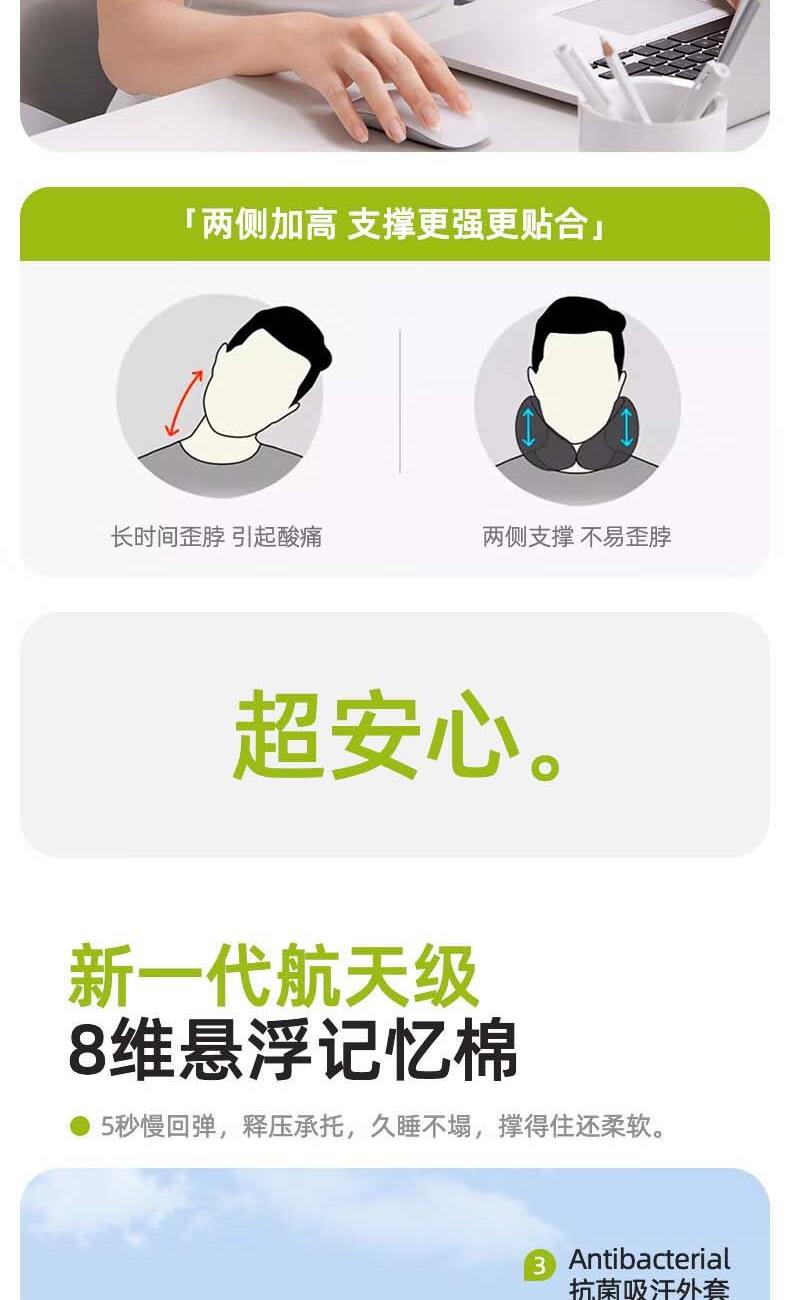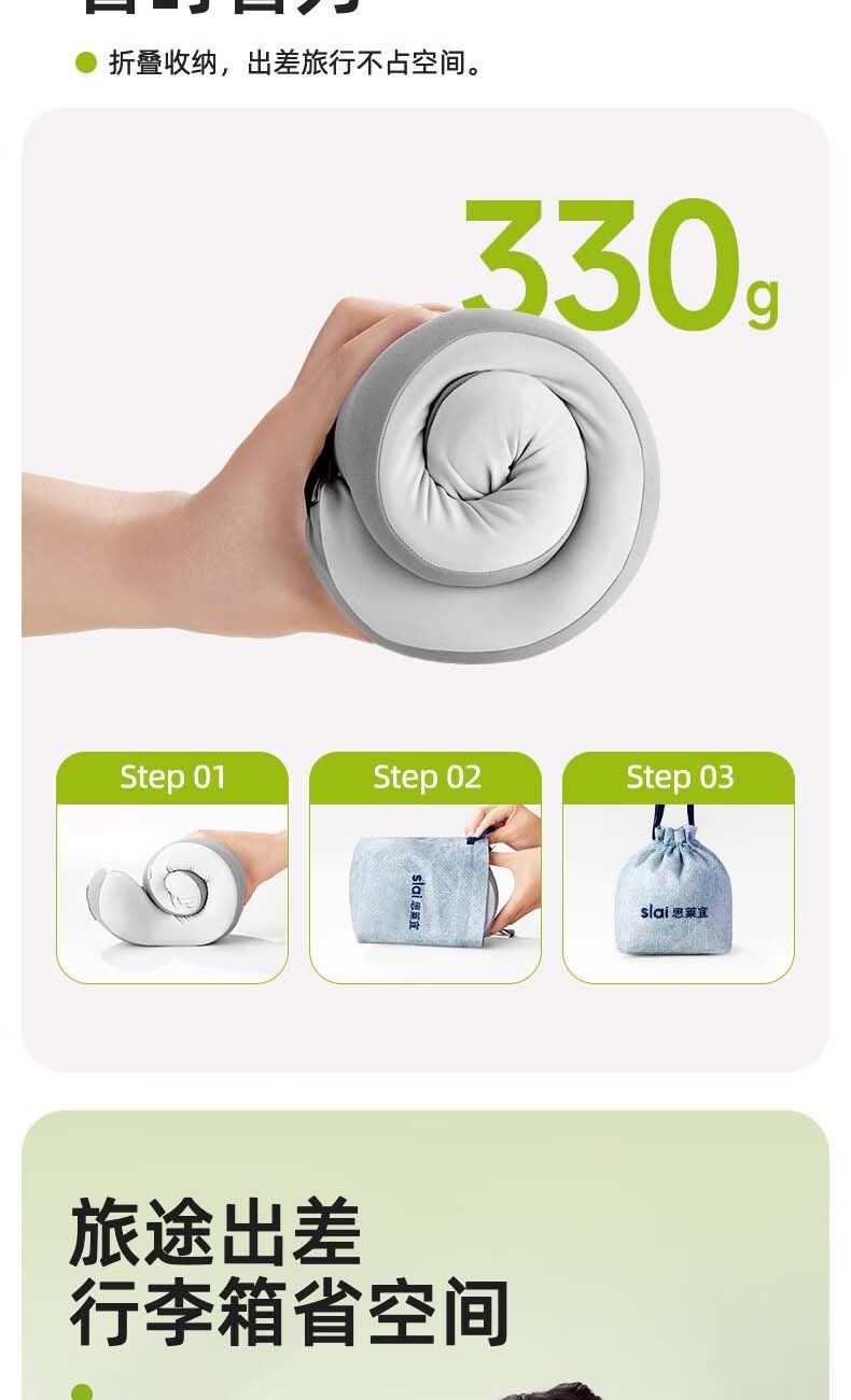 【360°环颈支撑】贴合颈部曲线,仰靠不空,轻松缓解颈椎压力; 【加高加宽设计】有效填补颈部空隙,提供更舒适的支撑体验; 【折叠收纳】一卷一收,省时省力,方便不累手,轻松变包挂; 【面料】吸汗黑科技,强吸汗,强透气,干爽不黏身;