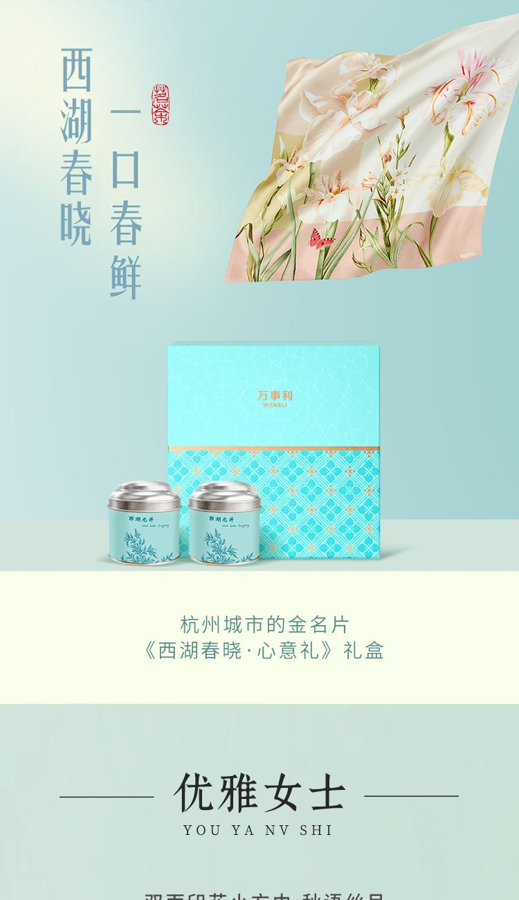 2026西湖龙井茶叶礼盒西湖春晓·心意礼(小方巾/领带款)
