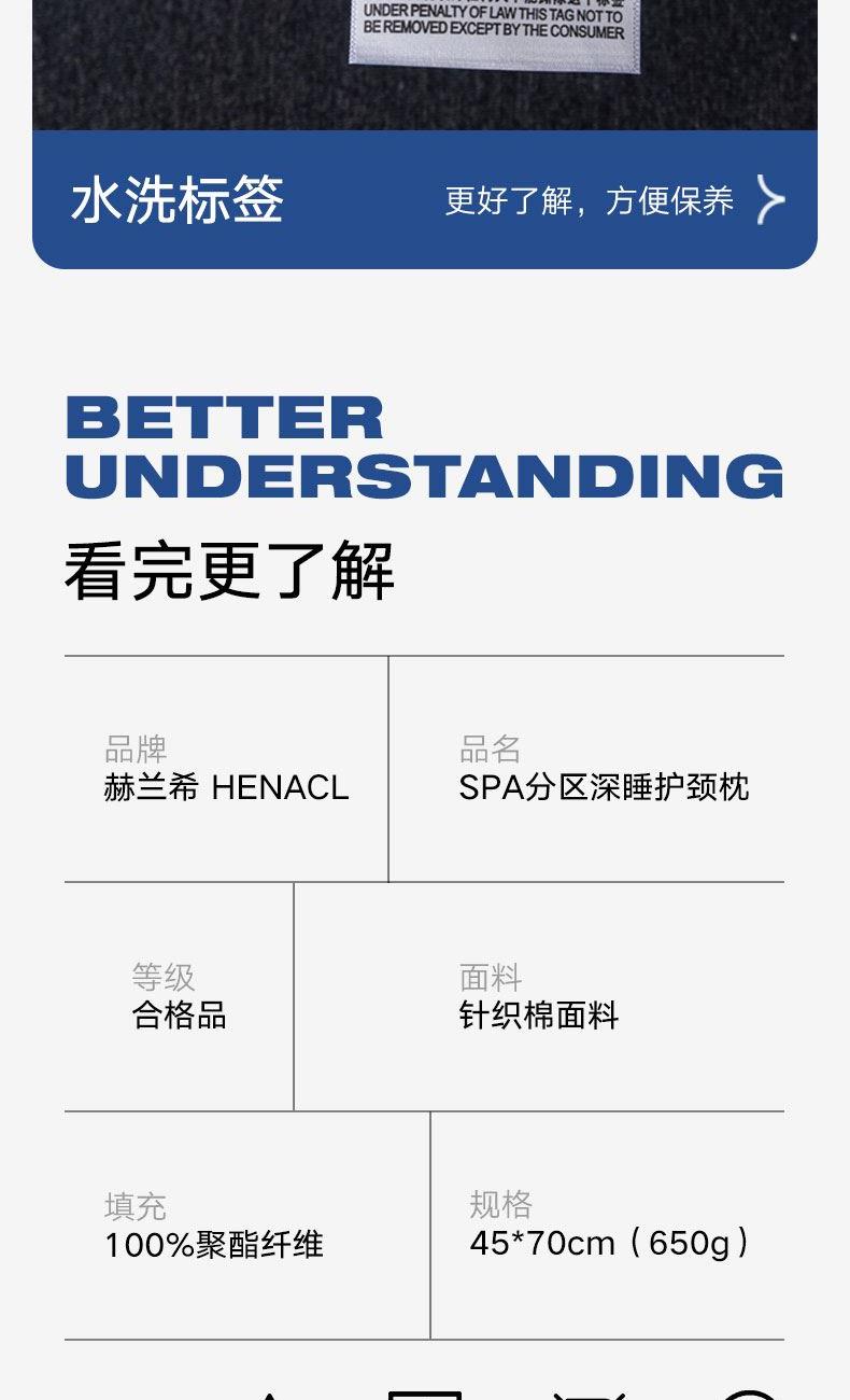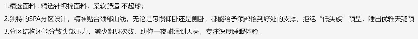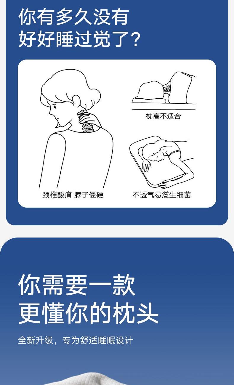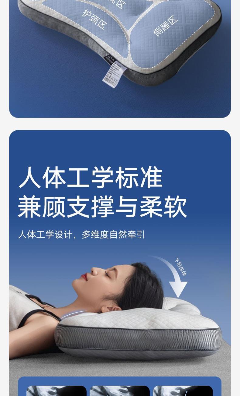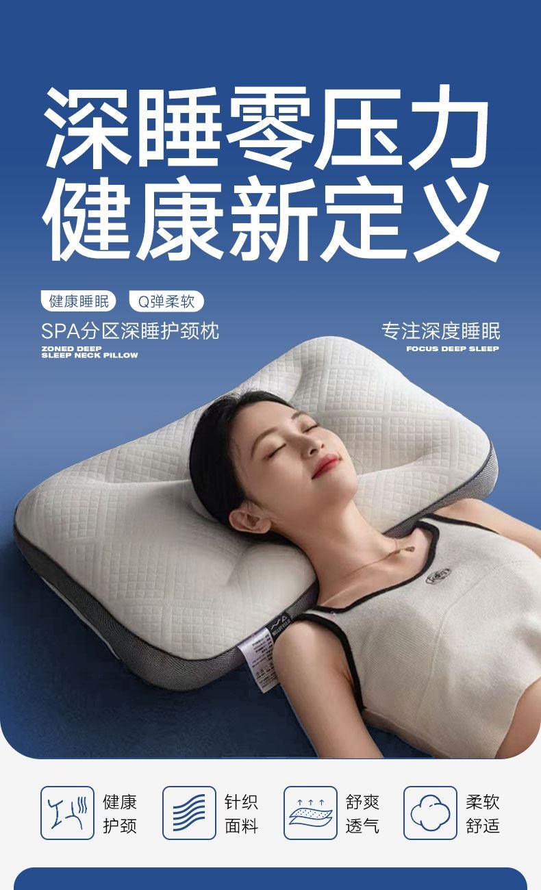 2.独特的SPA分区设计,精 准贴合颈部曲线,无论是习惯仰卧还是侧卧,都能给予颈部恰到好处的支撑,拒绝“低头族”颈型,睡出优雅天鹅颈