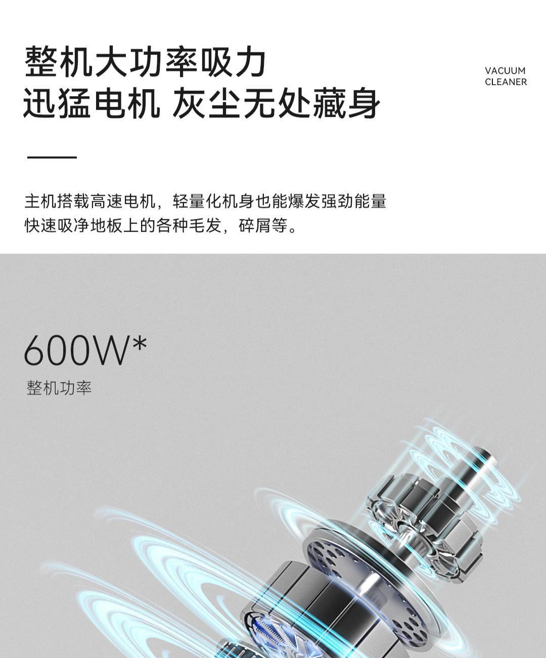 额定电压:220V~ 额定功率:600W 额定频率:50Hz 电源线长:480cm 材 质:地拖:PP;杆子:PVC:尘杯、机头把手:ABS 270°旋转地刷,角落缝隙吸尘也不怕 1L大容量尘桶,可视分体式 尘桶、滤芯可拆洗,更洁净,使用更实惠 17000PA大吸力,多重过滤 480cm电源线长,一键启动,操作方便,老人也能用