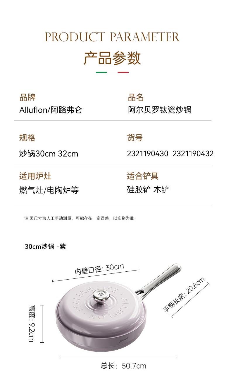 Alluflon阿路弗仑阿尔贝罗钛瓷炒锅32cm(椰紫)