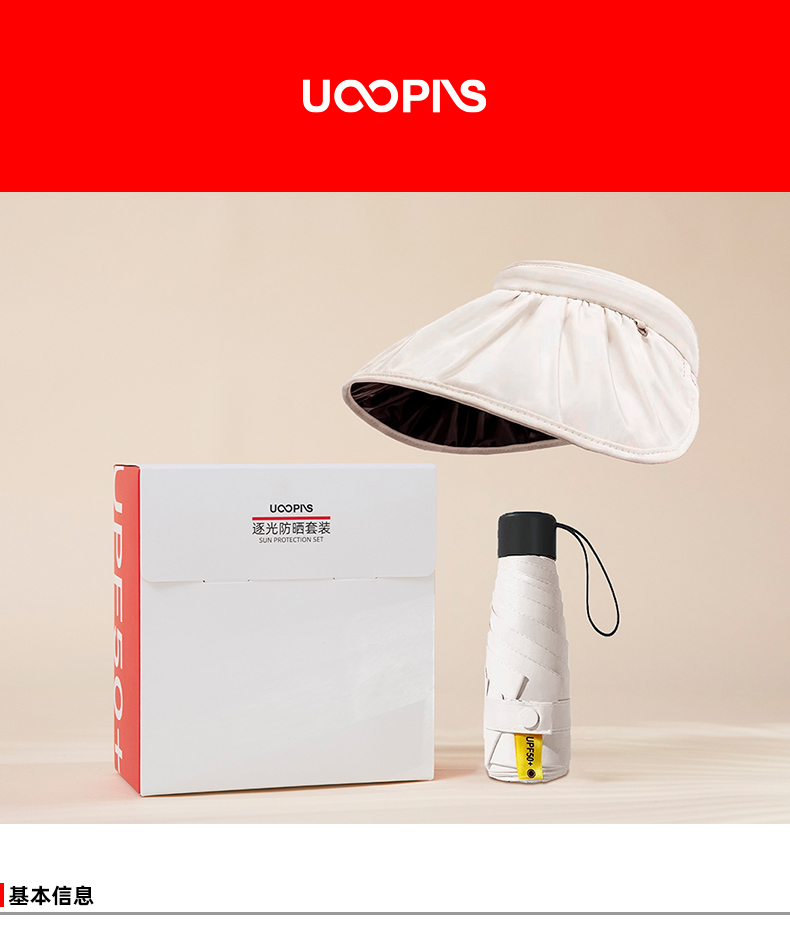 UOOPINS(优品序)防晒贝壳帽+黑胶晴雨伞组合
