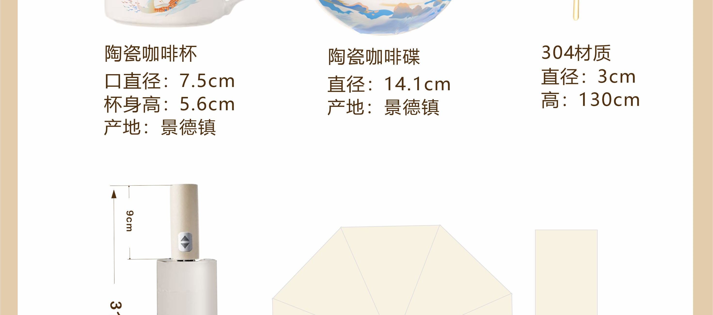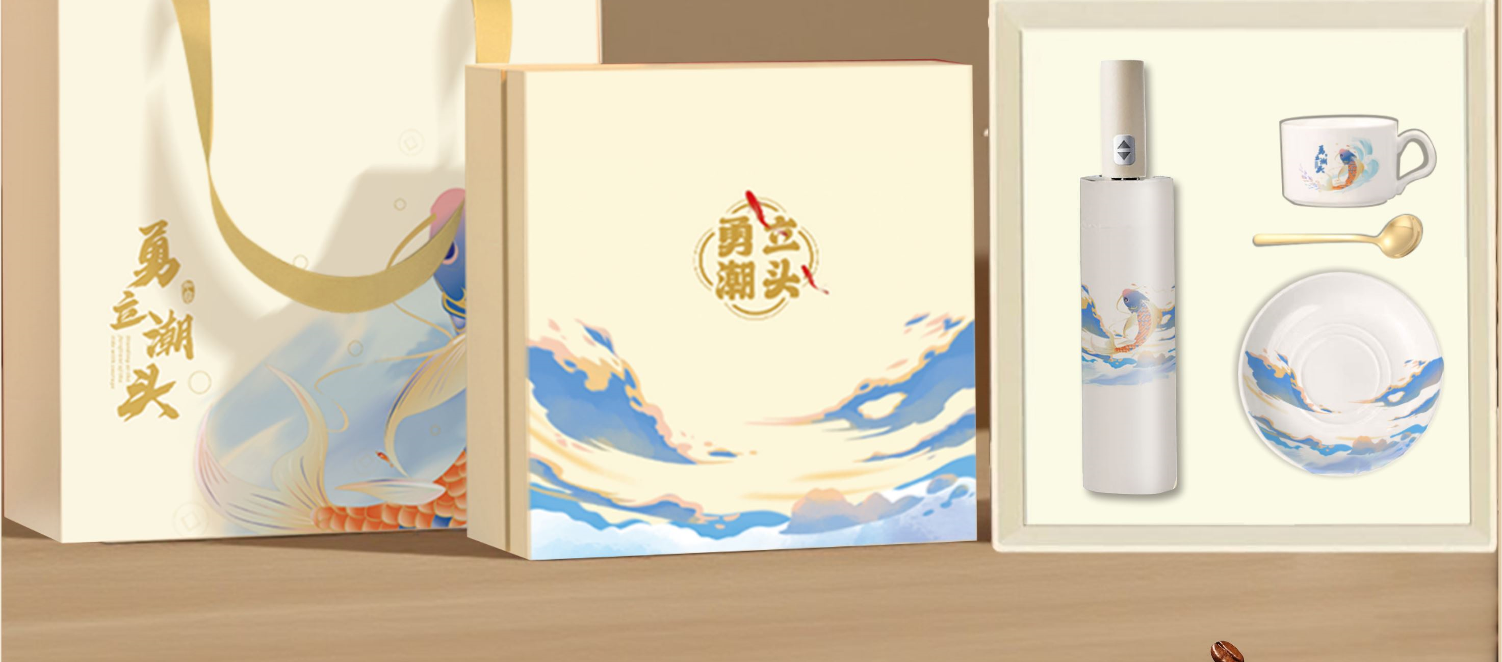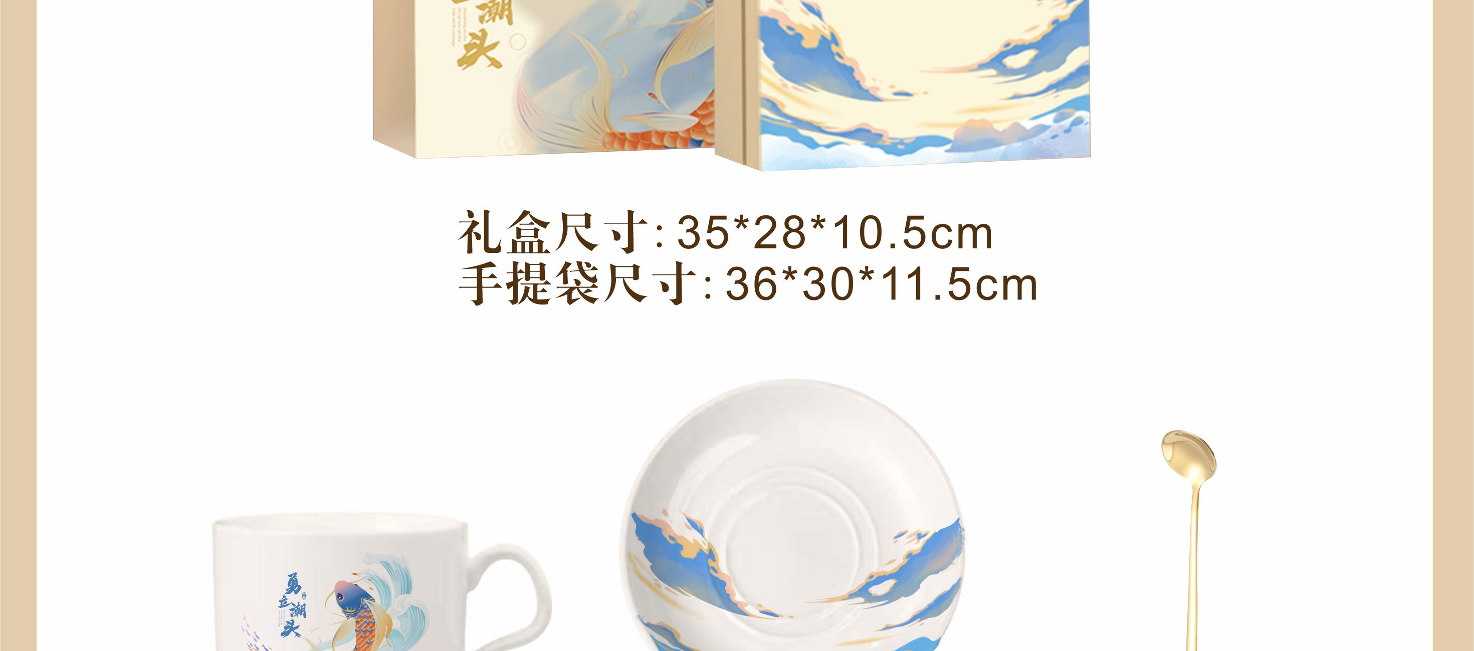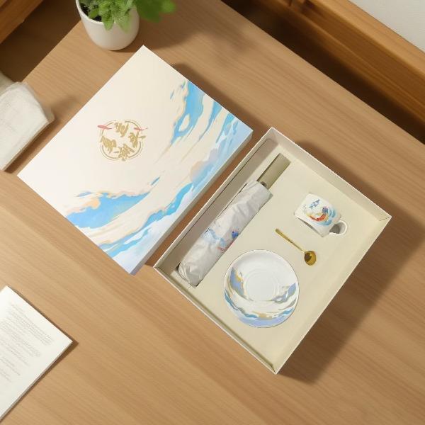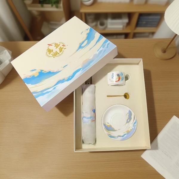 「浪尖伴礼」能量不断~~~ 勇立潮头者,总有风雨的底气, 一杯热望,一伞锋芒,陪你在浪潮之巅踏浪而行! 装备库已升级,请放心向浪而行—— 你的后背有我们撑起的「无畏结界」~~! 型号:NX-2025593 礼盒尺寸:35*28*10.5㎝ 手提袋:36*28*10.5㎝ 产品参数: 雨伞:双龙骨晴雨伞 材质:黑钢+纤维 颜色:梧桐米 工艺:才会 款式:自动开合 优势:加长手柄,握感升级 无惧狂风乱舞,烈日也能挡住 陶瓷咖啡杯 产地:中国.景德镇 颜色:高岭瓷白 优势:出自景德镇高岭土高温烧制而成