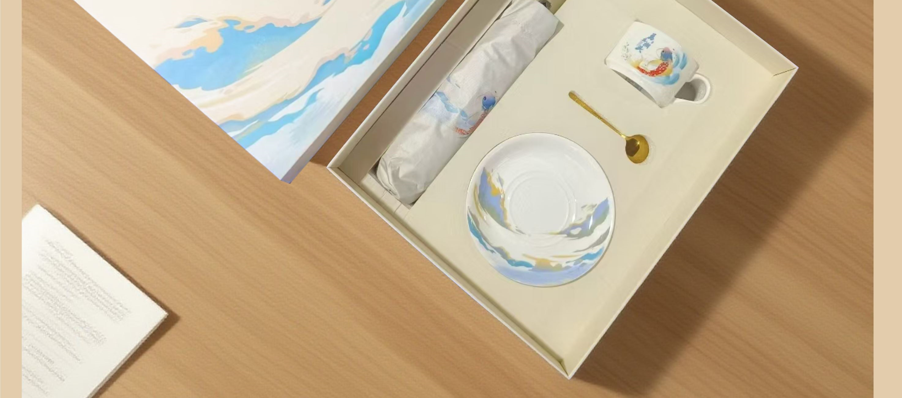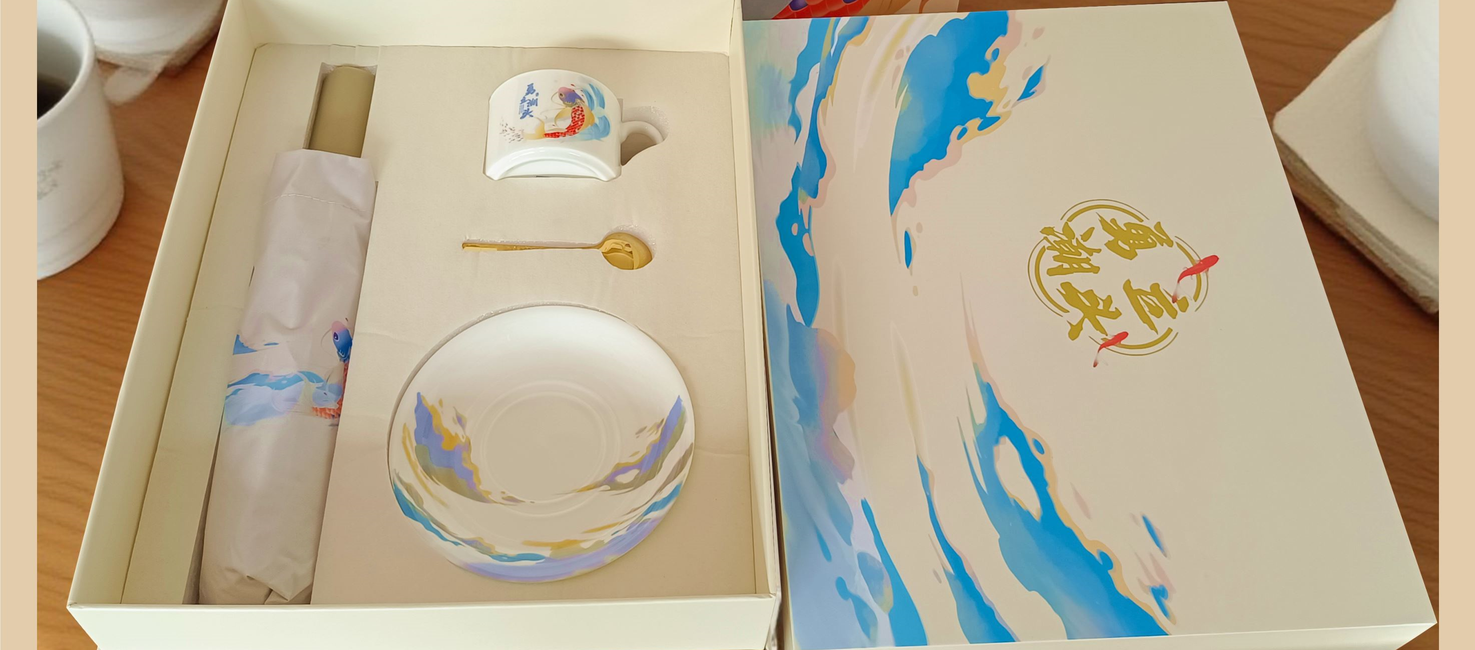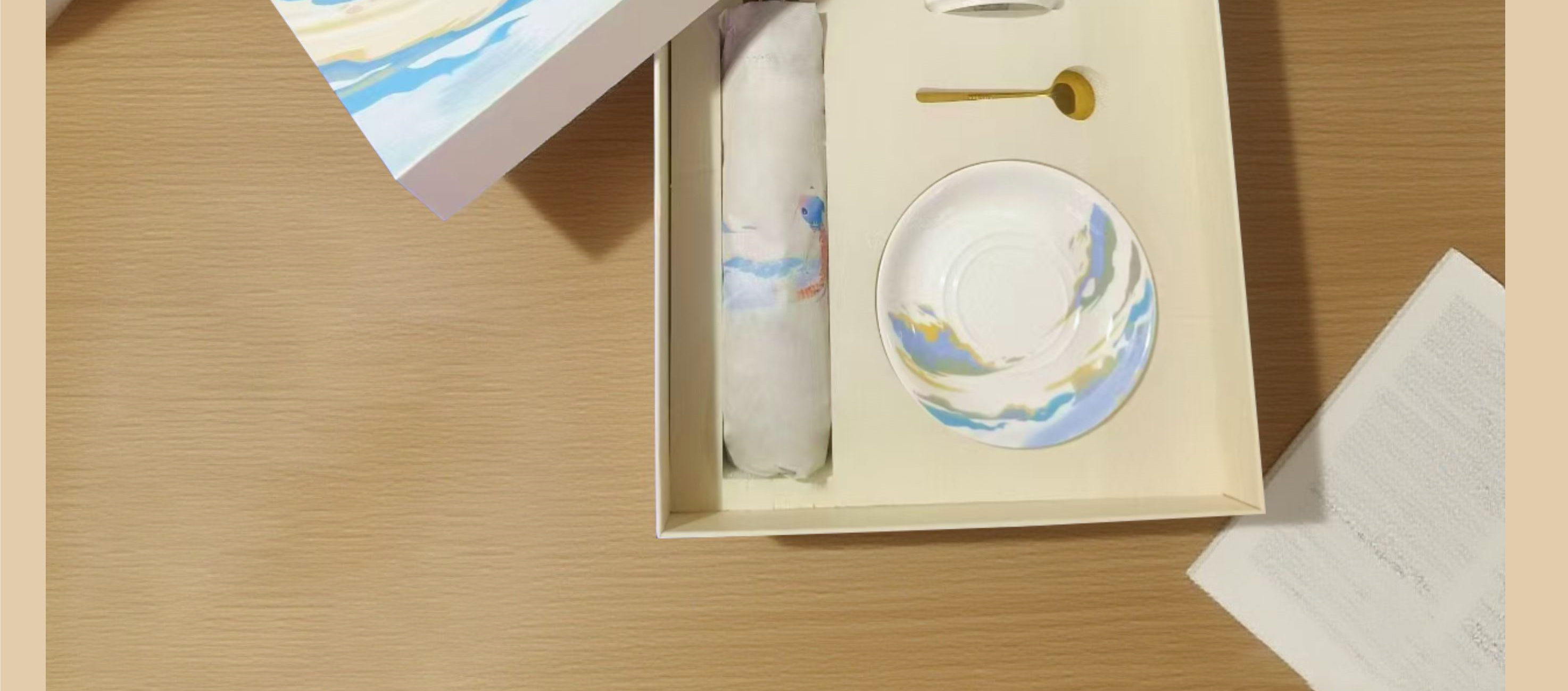 「浪尖伴礼」能量不断~~~ 勇立潮头者,总有风雨的底气, 一杯热望,一伞锋芒,陪你在浪潮之巅踏浪而行! 装备库已升级,请放心向浪而行—— 你的后背有我们撑起的「无畏结界」~~! 型号:NX-2025593 礼盒尺寸:35*28*10.5㎝ 手提袋:36*28*10.5㎝ 产品参数: 雨伞:双龙骨晴雨伞 材质:黑钢+纤维 颜色:梧桐米 工艺:才会 款式:自动开合 优势:加长手柄,握感升级 无惧狂风乱舞,烈日也能挡住 陶瓷咖啡杯 产地:中国.景德镇 颜色:高岭瓷白 优势:出自景德镇高岭土高温烧制而成