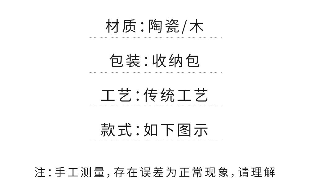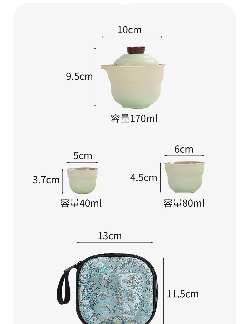壶:10*9.5厘米170ml 品茗杯:6*4.5厘米80ml 天然矿物釉,高温烧制无铅镉 ,精致便携, 搭配礼盒包装,自用赠礼两宜,瓷胎密实不吸茶香,久用更显韵味,以茶汤的甘醇,唤醒内心的宁静。