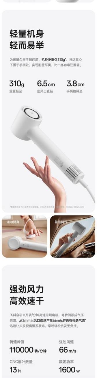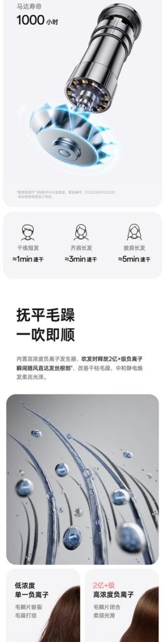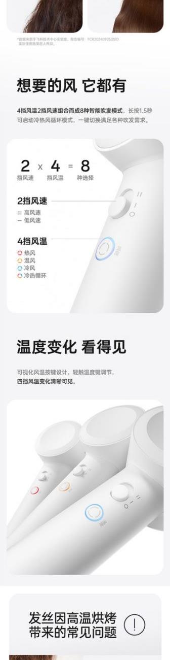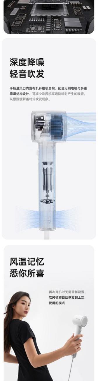 材质:不锈钢,ABS 配置: 11万转高速电机负 热量均衡技术 智能恒温护发 三色温度灯环 三档温度调节 三档风速调节 冷热循环风模式、离子功能 双重防过热保护 负离子功能、智能恒温护发