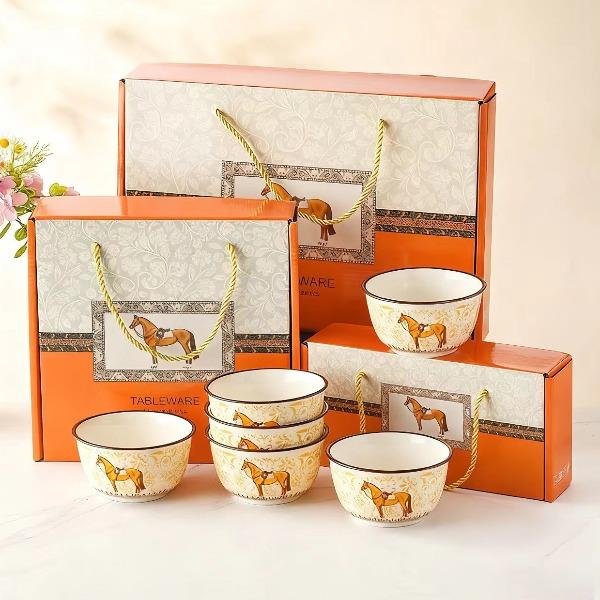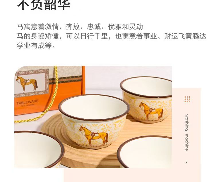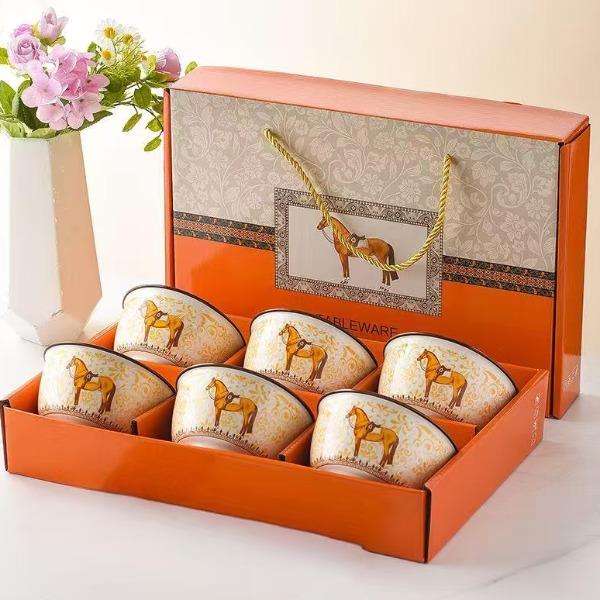 6碗套装:规格:36.5*6*24.5cm、1325g 外箱:75×33×49CM 28.5kg 产品特点: 2026年马到成功。精致好看的礼盒装,让人爱不释手,是送礼佳品哦。 餐具整理厚实防烫,久经耐用,釉面光滑,清洗方便!