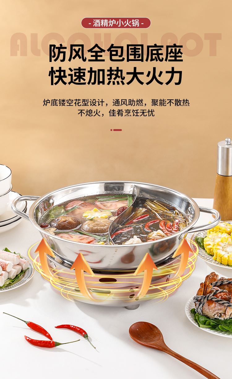 福禄双全-酒精炉鸳鸯火锅四件套