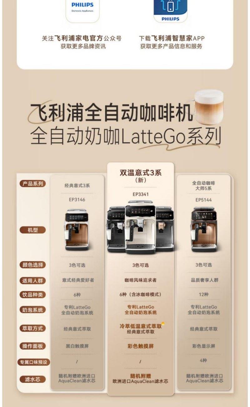 飞利浦(PHILIPS)云朵咖啡机新3系EP3341/62