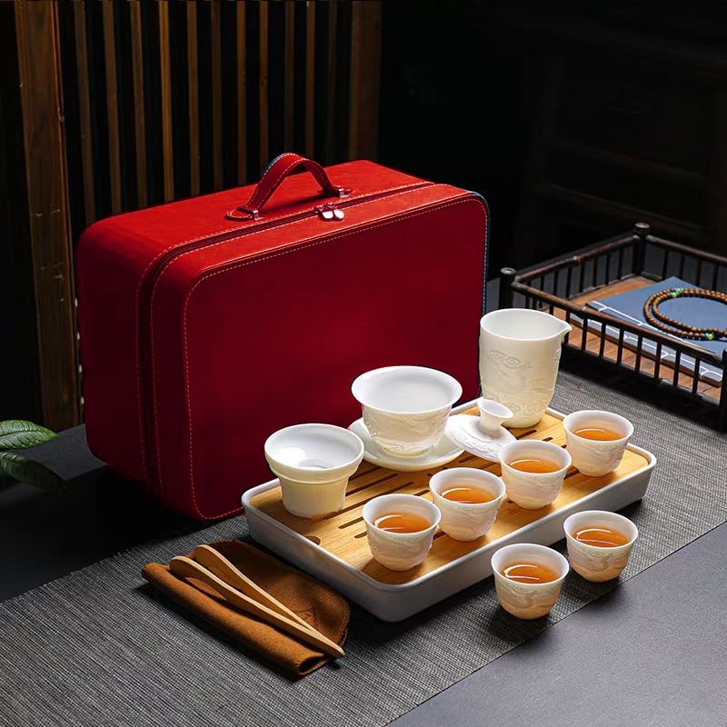 鹏翼母亲节凤鸣九天13头浮雕旅行茶具套装