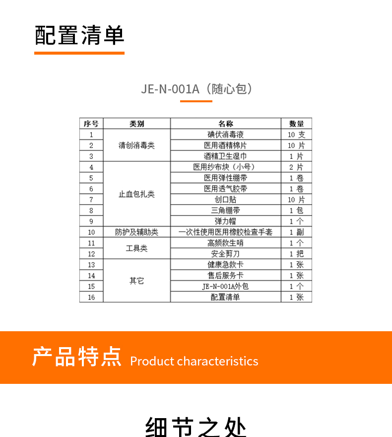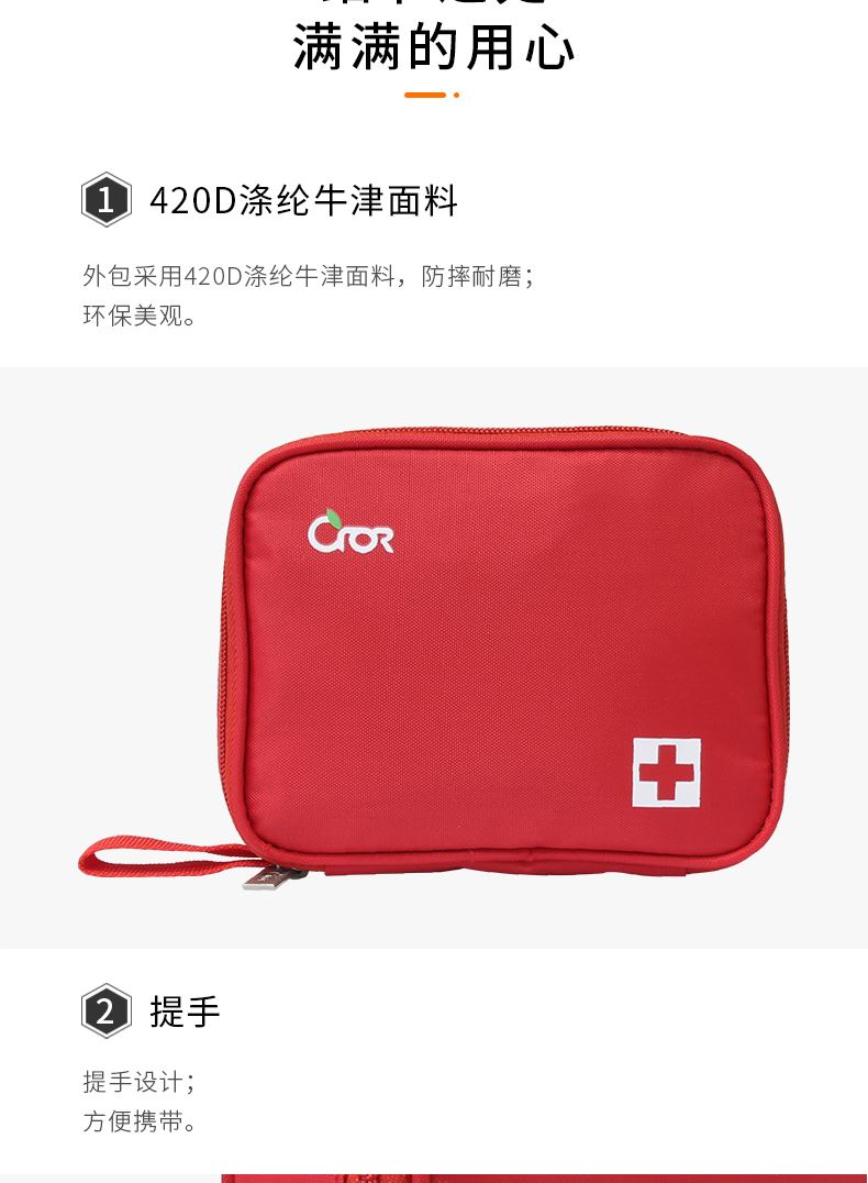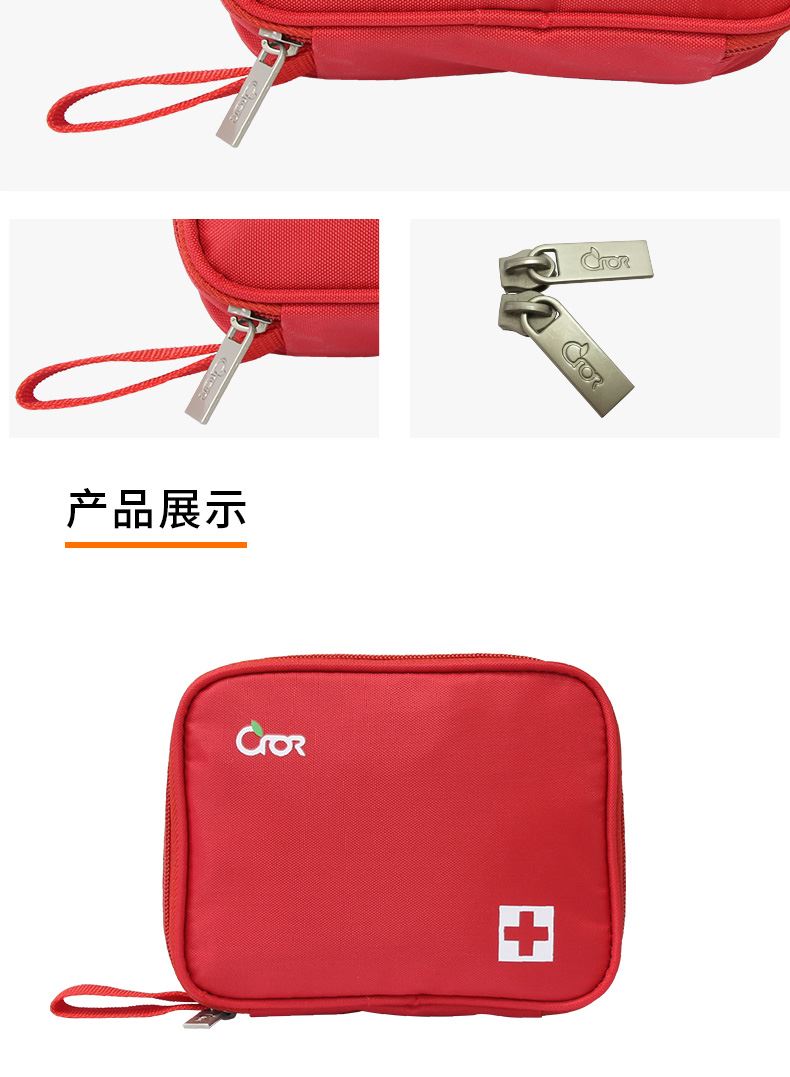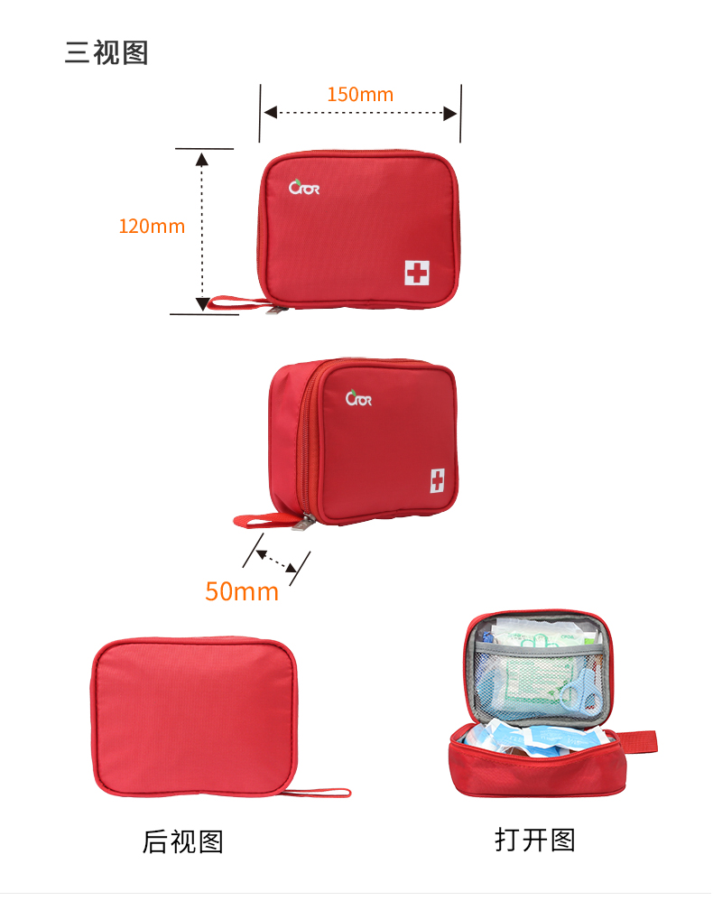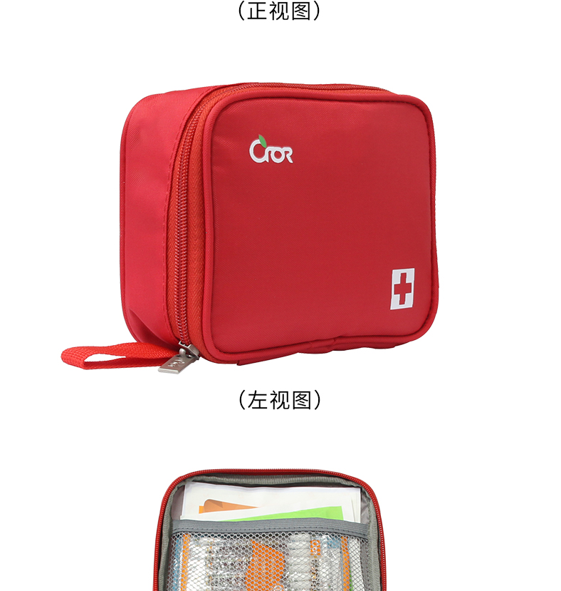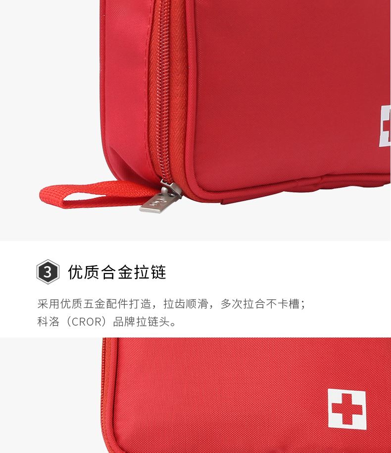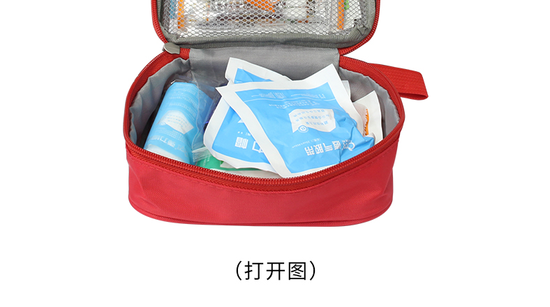 产品材质:420D 牛津布 产品规格:160*50*130mm 产品颜色:红色 产品配置:含5大类16种急救用品