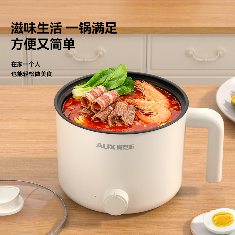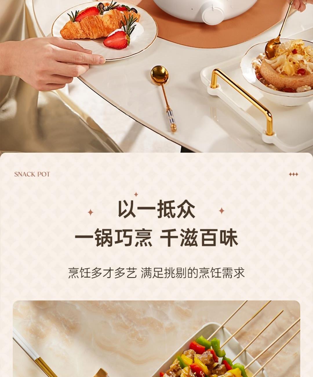 额定电压:220V~ 额定功率:1500W 额定频率:50Hz 容量:1200M 材质:内胆:聚四氟乙烯喷涂内胆,三角护套、电源线 一锅多滋味,满足三餐花式美味 两档火力可调,快煮慢炖随心选 不沾内胆,轻油烹饪更健康 双重跳断保护,烹饪更安心 1.2L容量,小巧机身免收纳