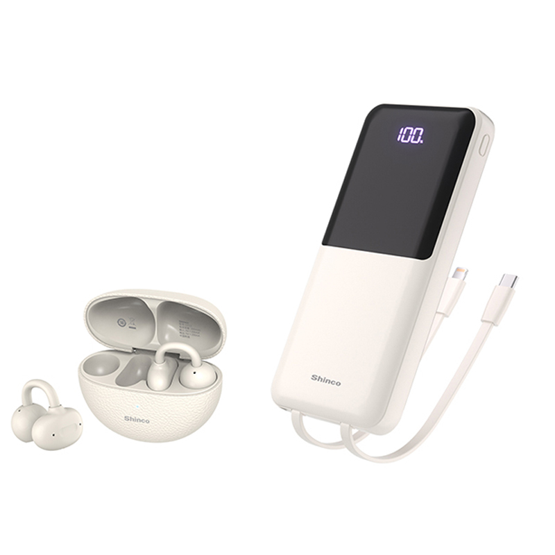 产品型号:GT13 电池容量:300mAh 3.7V 充电时间:约1.5小时 音乐/通话时间:约4小时 输入:5V=200mA 蓝牙:6.0 蓝牙发射距离:无障碍10米内 电芯容量:10000mAh(37Wh) 电芯类型:锂聚合物 能量转换率:≥53% 总输出:5V=3A Max 额定容量:5300mAh (5V-3A) Type-C输入:5V-3A/9V-2A/12V-1.5A Type-C输出:5V-3A/9V-2.22A/12V-1.5A (20W) lightning线输出:5V-2A USB-A/Type-C线输出:5V-3A/9V-2.22A/12V-5A/10V-2.25A (22.5W) 1:OPEN开放式不入耳、无感佩戴、安全听音、感知外界、与人沟通无需摘取耳机 2:新一代的低功耗蓝牙6.0芯片,数据传输全面革新,连接简单快捷、信号稳定,再也不用担心听音乐和通话时断断续续 3:智能通话降噪,听得清,讲得清,拾取语音,滤除噪音干扰,身处闹市也能清晰通话,还原清晰人声 4:游戏低延迟算法,无感知延迟才能全身心,投入战场。声画同步,才能声临其境 Type-C线+lightning线+USB-A输出口+Type-C输出口,可同时为4台设备输出充电,充电不等待 自带双线、真快充、兼容苹果和华为手机新机型快充协议,PD20W+华为22.5W,随地续航 大容量 10000mAh、出行电量没烦恼 C口支持PD20W输出、支持iphone8-17系列手机快充