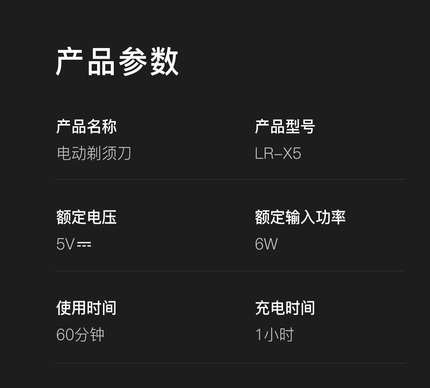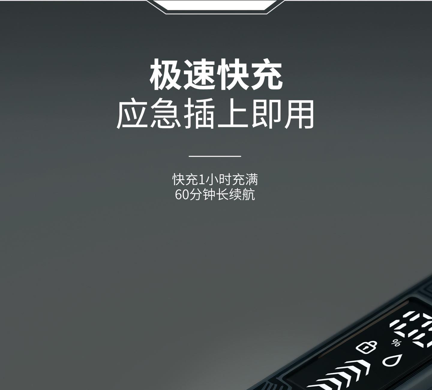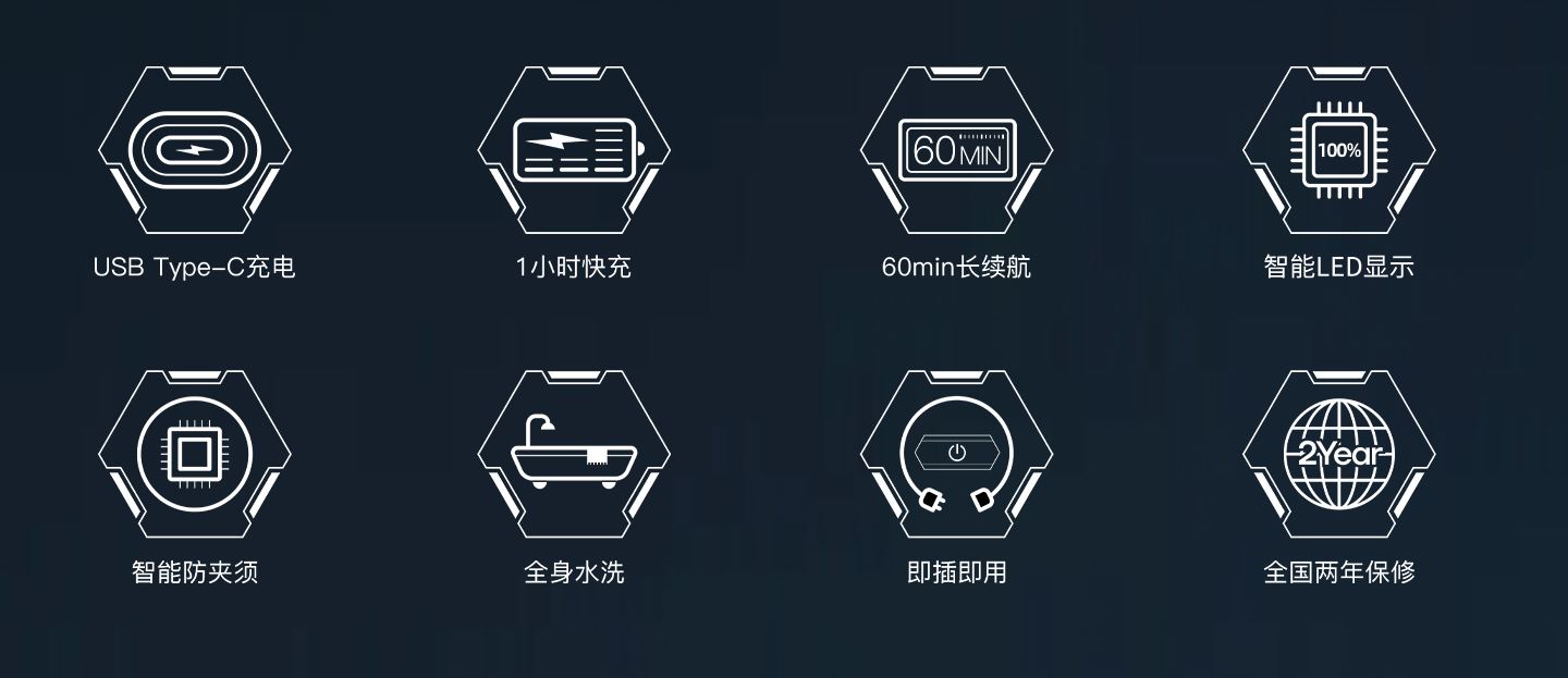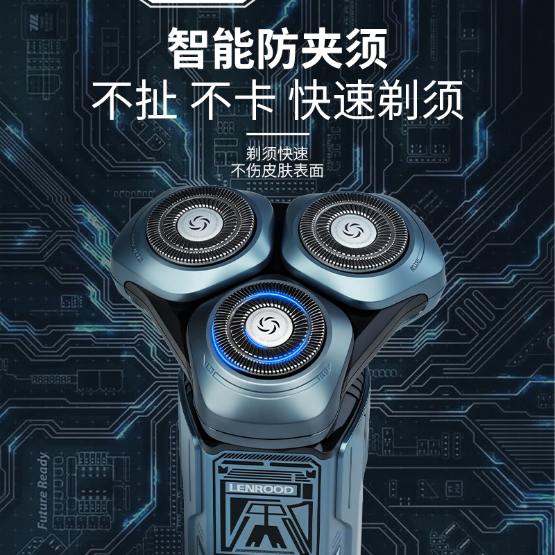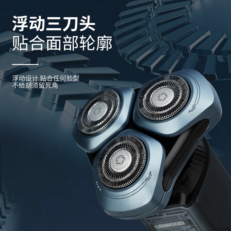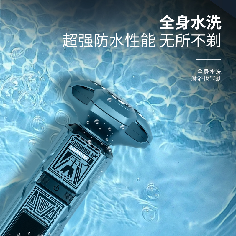 1.三重旋转式浮动刀头 2.机甲风外观造型 3.60 分钟长效续航 4.Type-C1小时快充,即插即用 5.IPX6 级防水 6.全 ABS 轻量机身 7.高清数码显示电量,实时充电显示 8.智能防夹须技术 9.旅行锁功能,长按解锁,一键启动;