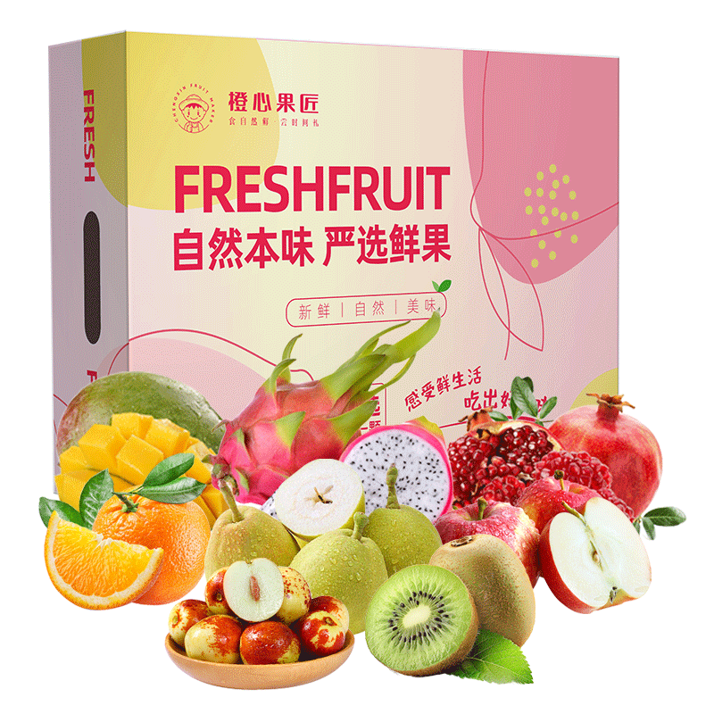 25年12月1日-次年3月 四川耙耙柑*2个/450g 云南牛奶枣*1盒/500g 越南白心火龙果*1个/500g 智利咖喱果*2个/350g 智利奇异果*2个/250g 时令芒果*1个/450g 赣南脐橙*2个/450g 新疆香梨*2个/220g --------------------------------------- 4月1日-8月底配置: 应季甜瓜单果约重250g*2个; 大连油桃单果约重125g*4个; 越南火龙果单果约重500g*1个; 美国布朗李单果约重100g*3个; 智利奇异果单果约重125g*2个; 海南时令芒果单果约重500g*1个; 南非脐橙单果约重230g*2个; 新疆香梨单果约重110g*2个;