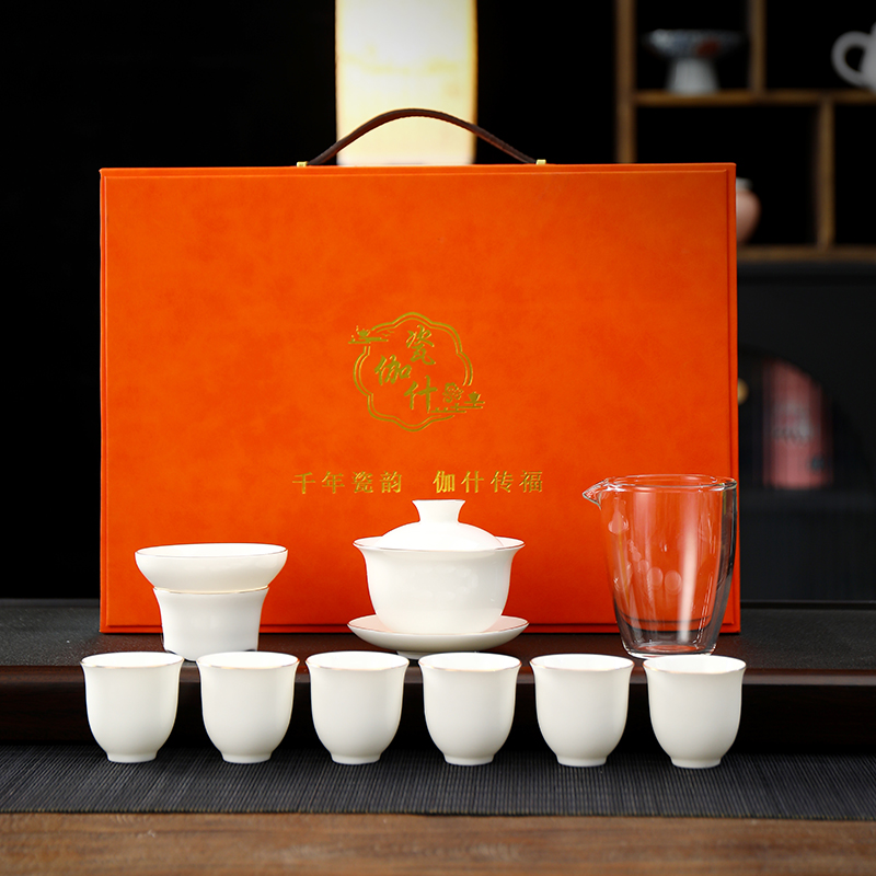 瓷伽什天高云阔羊脂玉描金套组