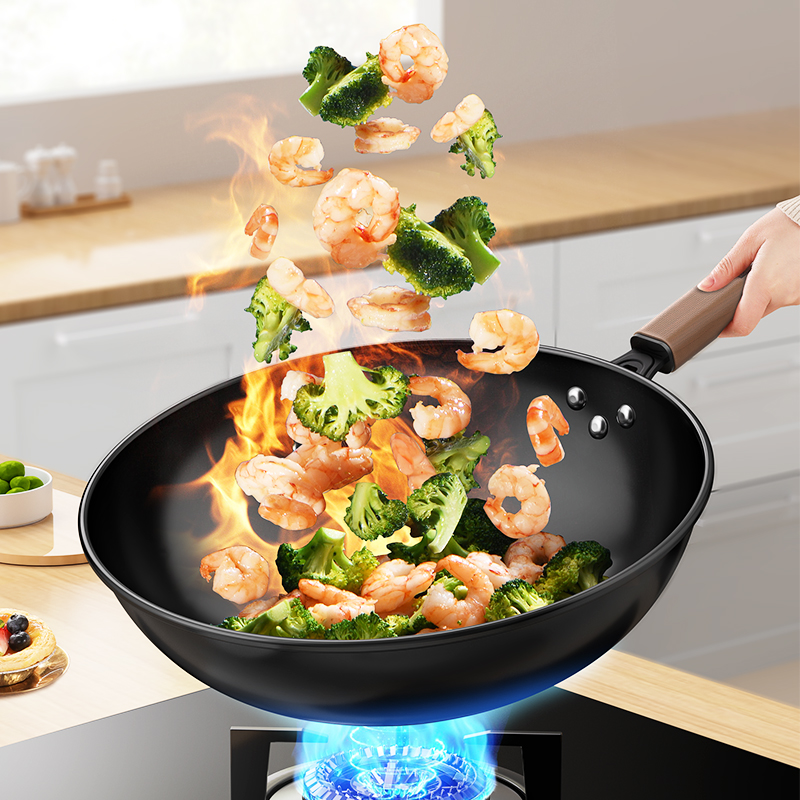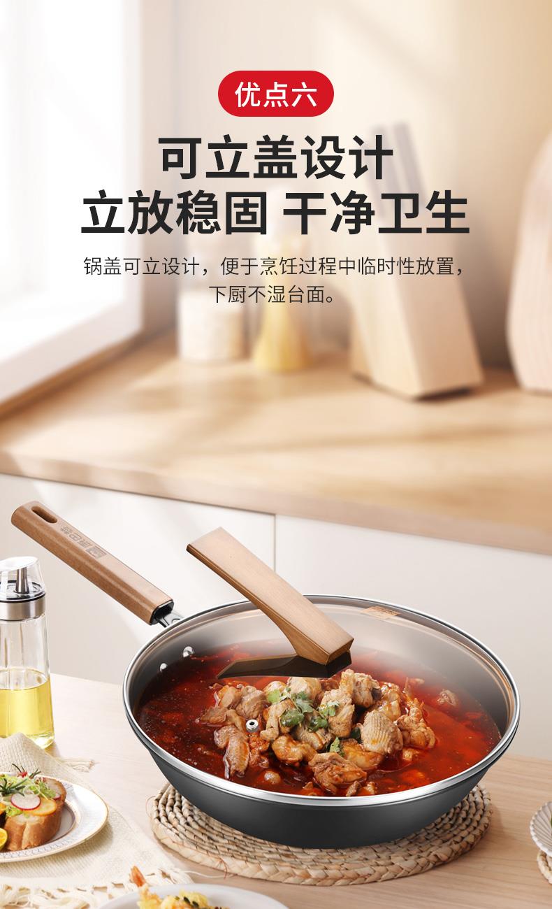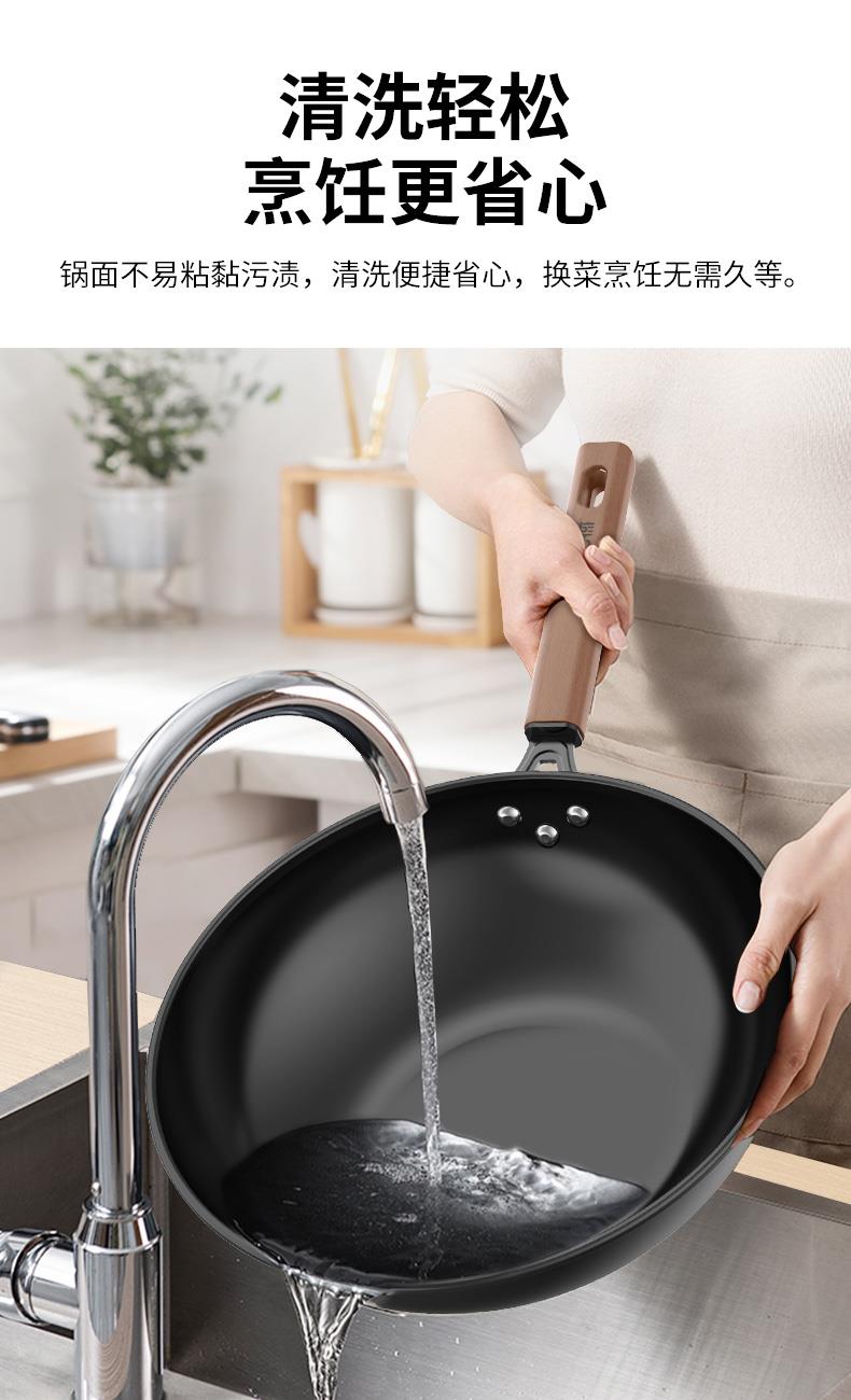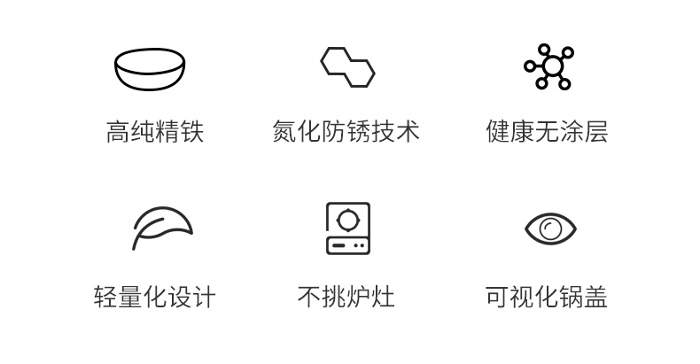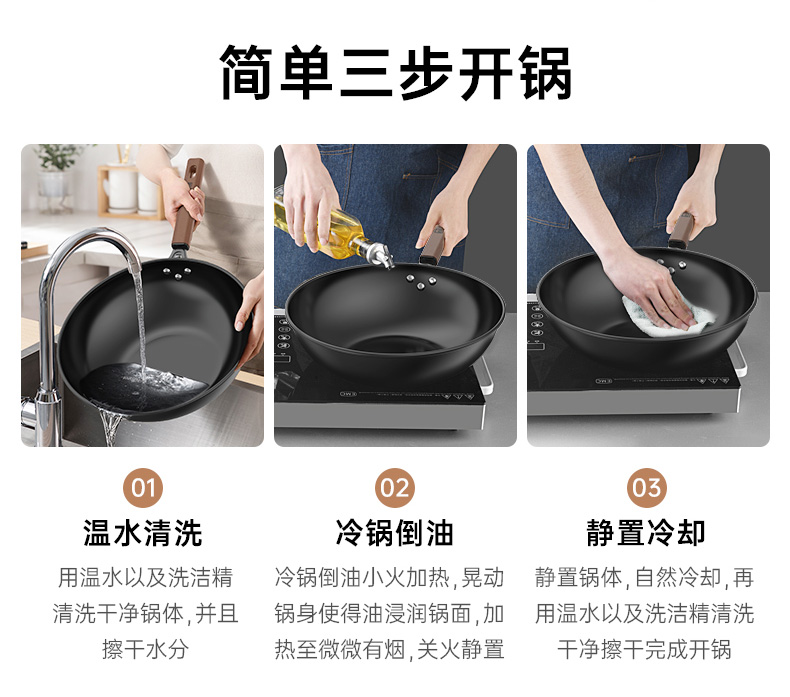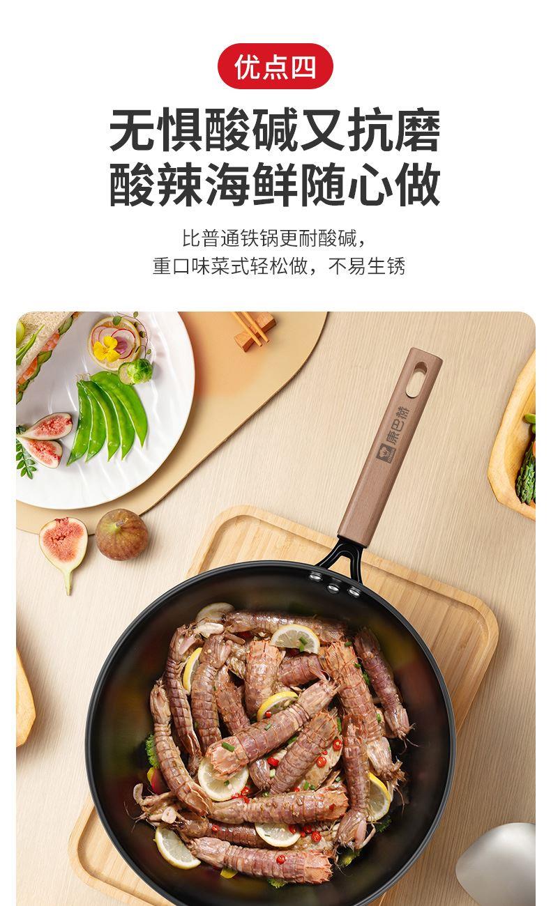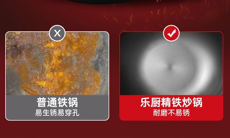规格:32cm 净重:2.5kg 包装尺寸:52*40*79.8cm ◎健康无涂层全家吃放心菜:甄选精铁材质,不添加任何化学涂层,不析出有害物质,没有涂层脱落风险,安心每一餐。 ◎氮化处理技术比普通铁锅更耐用:采用氮化处理技术,提高了铁质硬度和密度,大大增强铁锅防锈能力、抗腐蚀性和耐磨性,无需过多担心铁锅生锈危害身体健康。 ◎养出来的不粘锅,越用越顺滑:铁锅在正确开锅后,铁锅表面会形成油膜,越用越不粘,使用更健康,炒菜地道有锅气。 ◎无惧酸碱又抗磨酸辣海鲜随心做:比普通铁锅更耐酸碱,重口味菜式轻松做,不易生锈 ◎轻量化设计轻松颠勺得心应手:锅身重约1.25kg,女生也能单手颠锅,轻盈精铁锅体,畅酣淋漓轻松烹饪。 ◎可立盖设计立放稳固干净卫生:锅盖可立设计,便于烹饪过程中临时性放置,下厨不湿台面,清洗轻松烹饪更省心