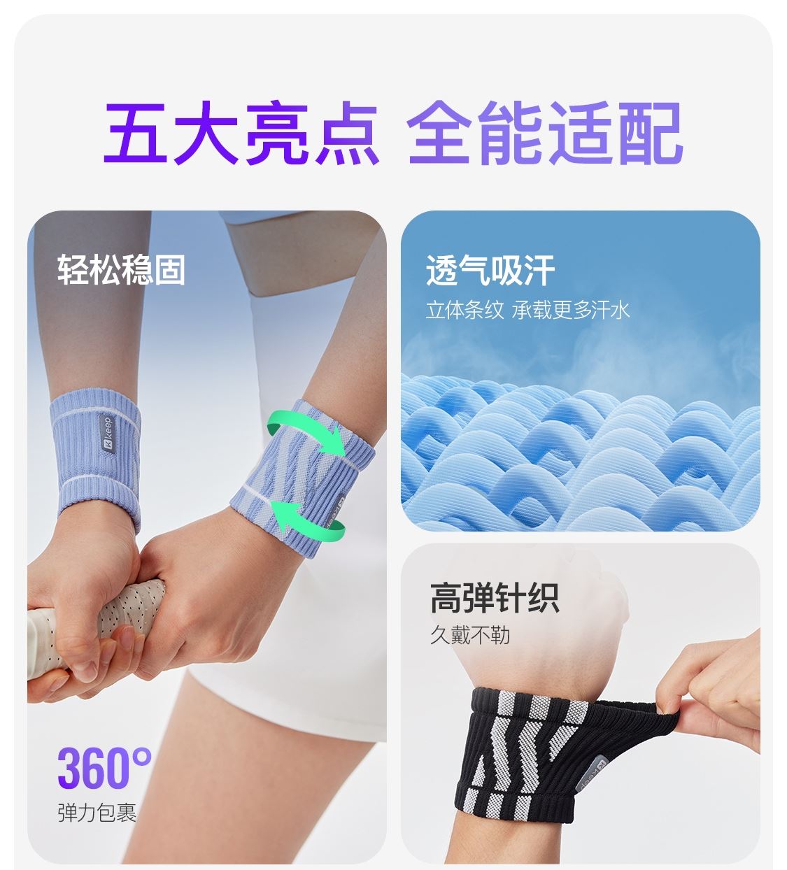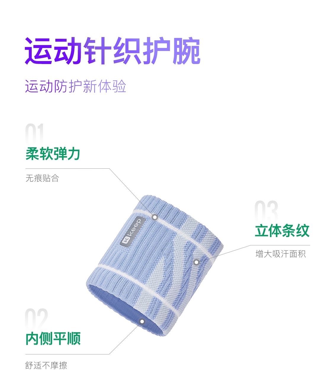 Keep运动针织护腕--蓝/绿/黑/灰色(单只装)