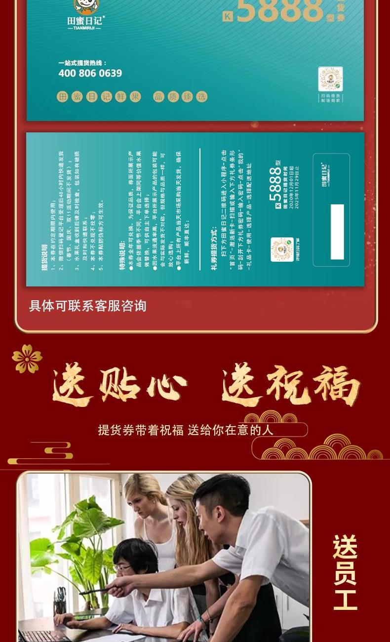 田蜜日记专业给各综合性平台、礼品公司、卡册公司等渠道提供全年水果一件代发及节假日项目集采业务,目前已对接了如:得力、史泰博、齐心等三百多个平台及渠道,整年水果单品丰富,可开专票、可授权、提供京东比价链接、提供主图详情页,同时发行全国通用,全年可自由兑换的田蜜日记水果提货券,全国免费配送到家,长期有效,售后全包