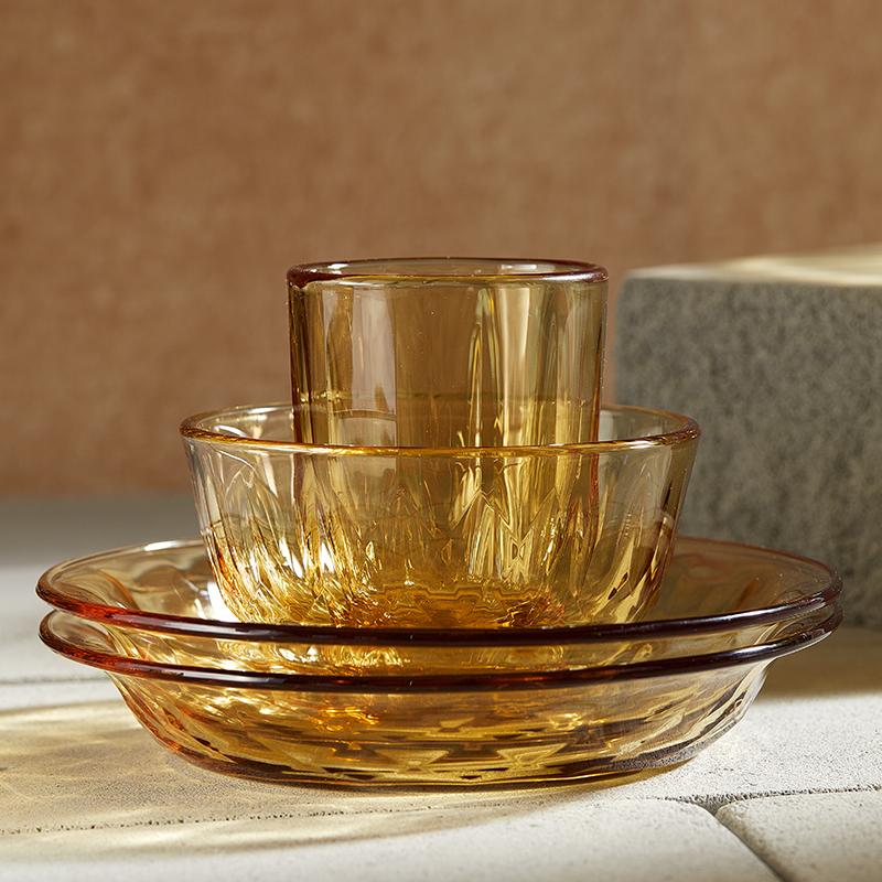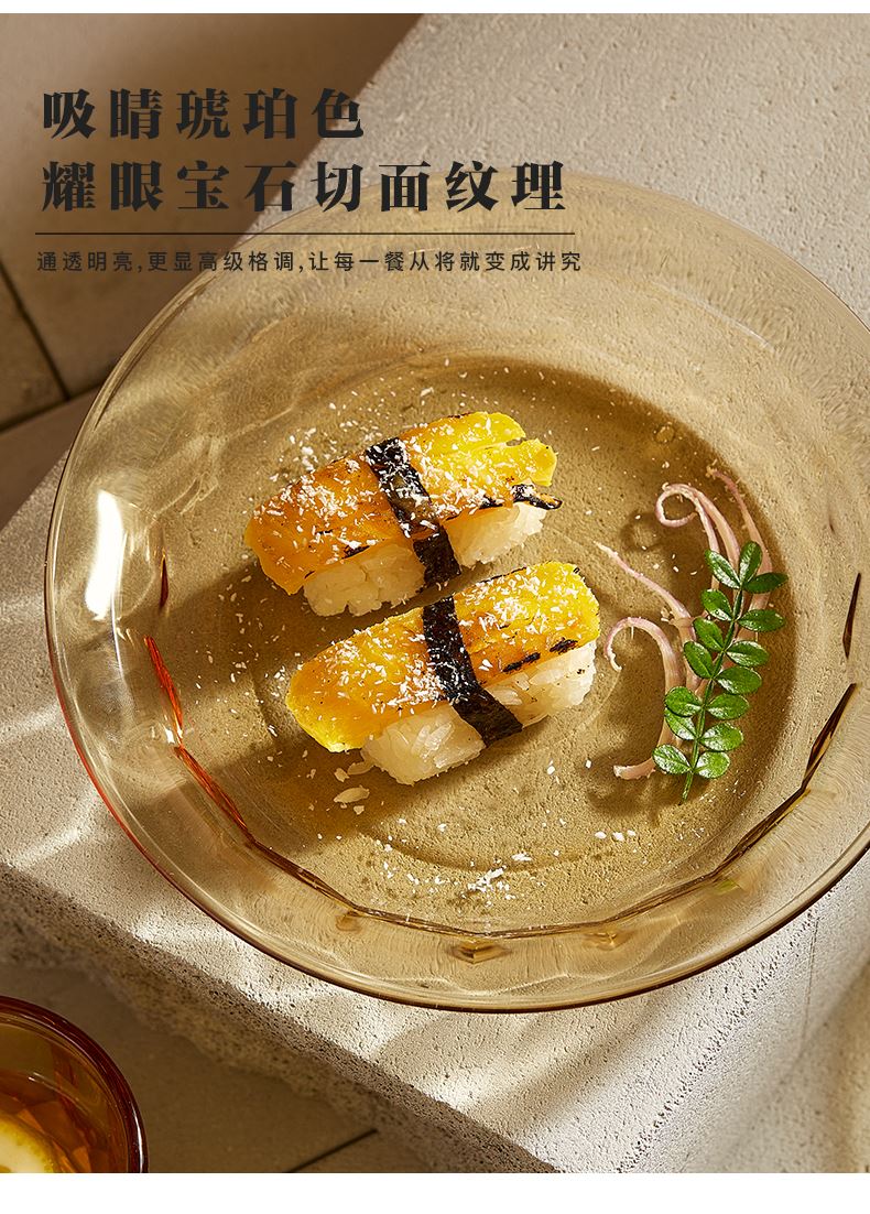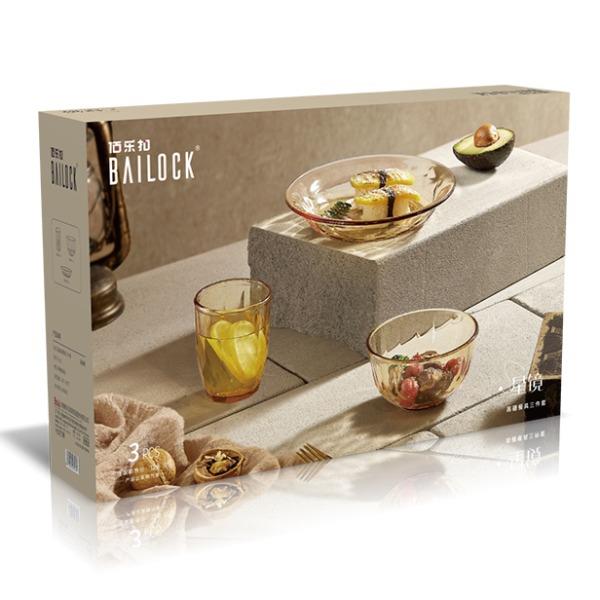 适用温度:-20°C-200°C 材 质:高硼硅玻璃 产品参数:小碗460ml*1、 杯260ml*1、 盘196mm*1 彩盒尺寸:343*91*215mm 外箱尺寸:57.3*35.5*44.9cm 产品卖点:1.产品采用高硼色料玻璃材质,颜色与生俱来,永不退色。烤箱、微波炉、冰箱冷冻放心使用。2.星境高硼餐具设计理念,用线条勾勒几何切面,以面为境折射时光、徜徉星空。3.触感温润,质感光滑,为您的餐桌增添一抹高雅;