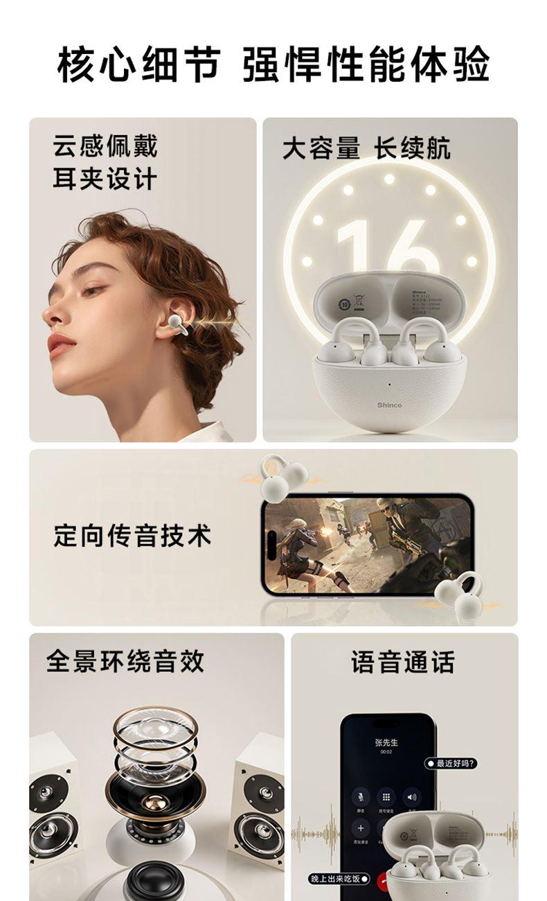 1:OPEN开放式不入耳、无感佩戴、安全听音、感知外界、与人沟通无需摘取耳机