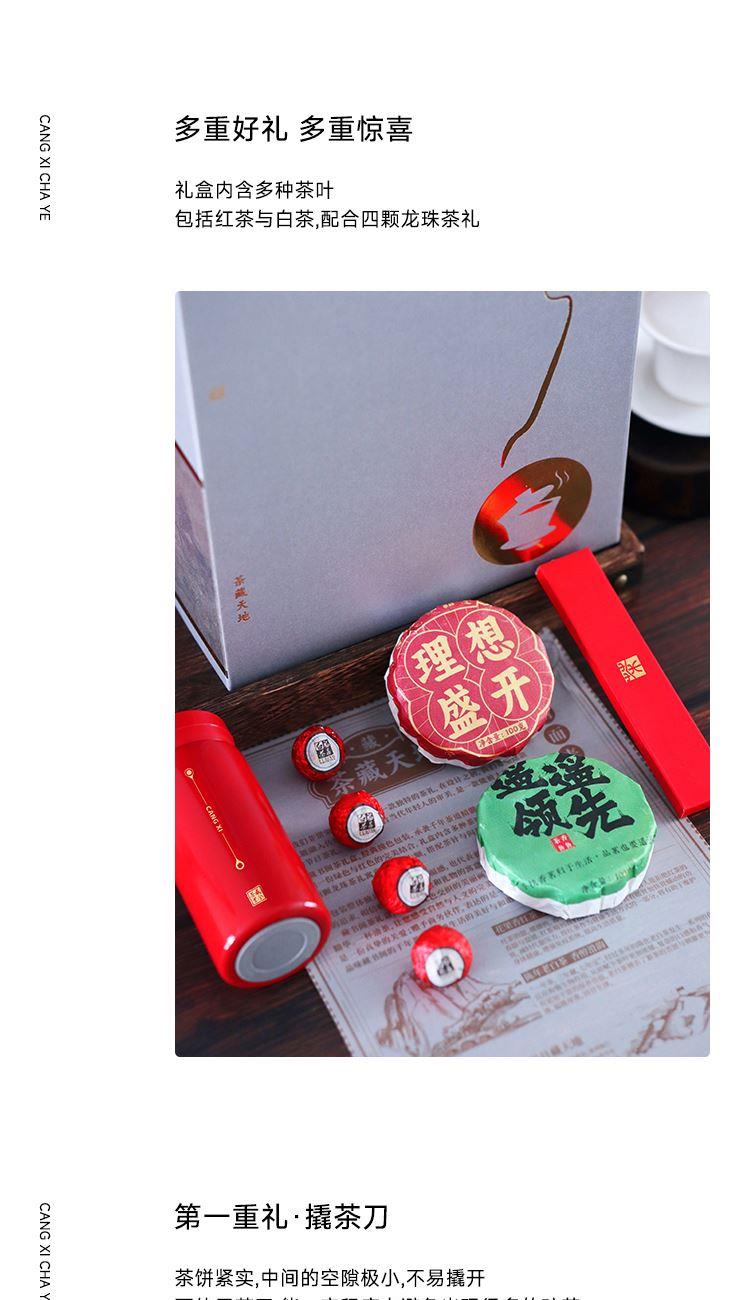 ✅藏书阁茶礼内含多重好礼🎁 ✅一柄撬茶刀,寓意一帆风顺🎁 ✅一个保温杯,装一壶清茶,诸事顺心🎁 ✅两块饼茶,寓意二龙腾飞🎁 ✅四颗龙珠茶,象征四季平安🎁 ✅一盒八礼,八方来财🎁 不仅好喝,还养生💪~一口胜却人间无数👍