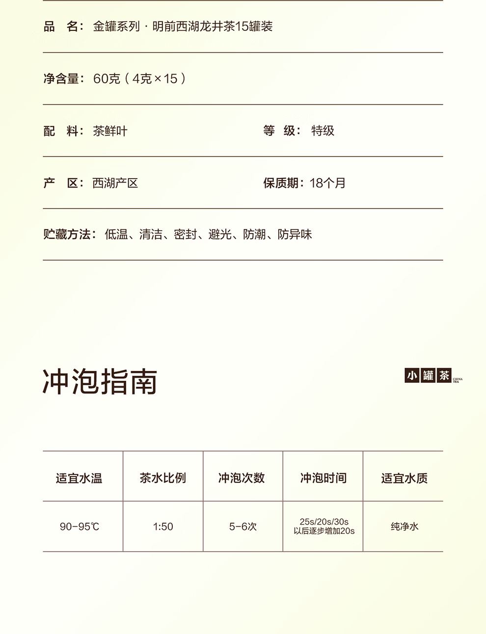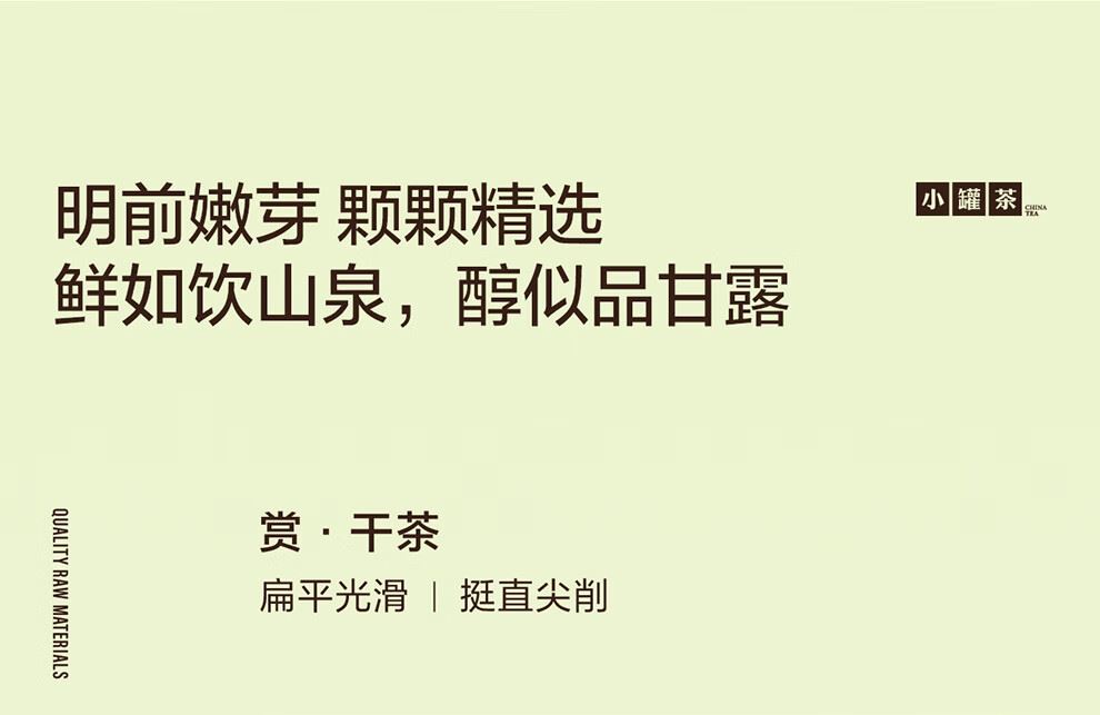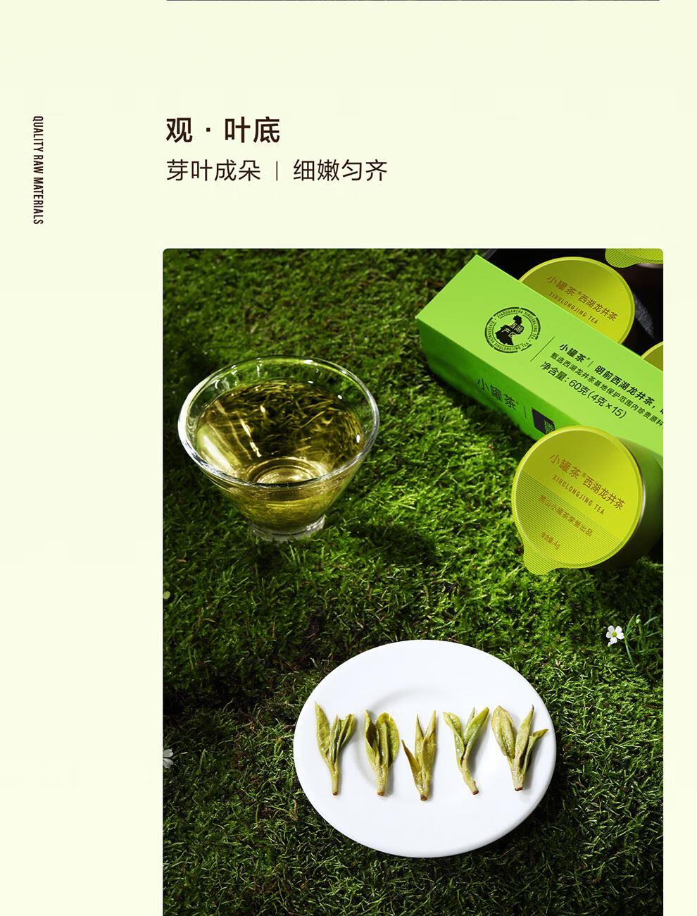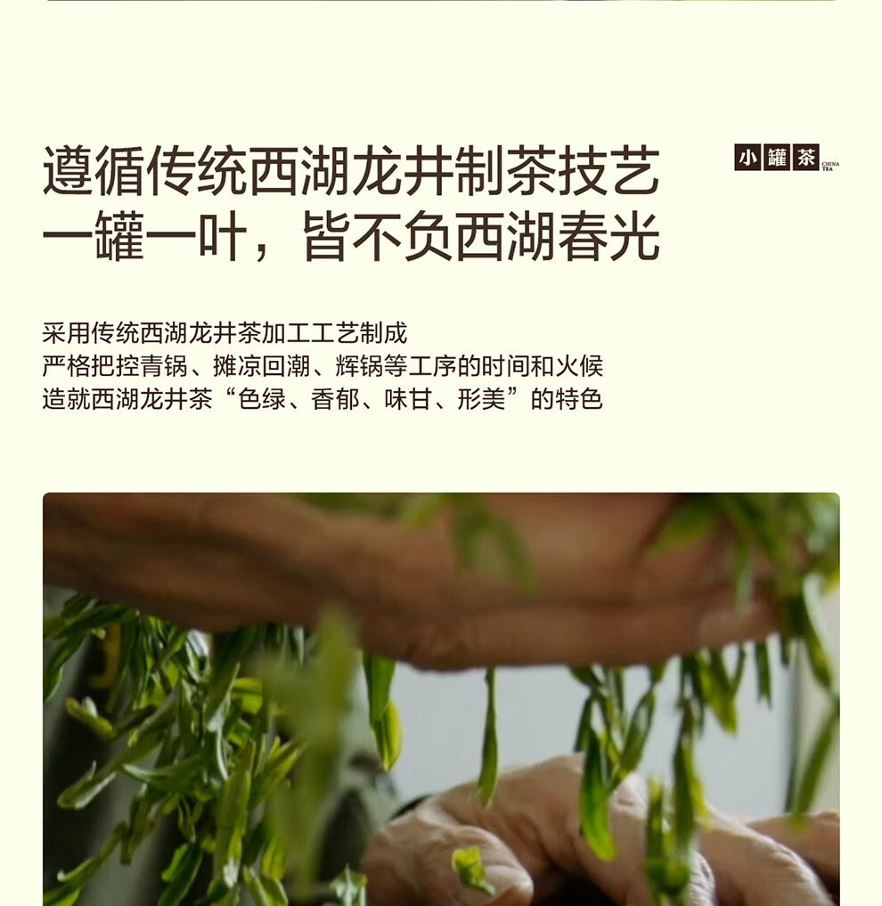 轻奢商务茶叶pin牌-小罐茶 小罐茶全国线下2000+实体门店 公证处公证 x 小罐茶敢保真(产地保真、年份保真、安全保真) 高duan档次商务送礼就送小罐茶 嫩栗鲜香的“江南春” 大师系列·西湖龙井茶15罐装(金罐) 净含量:60克(4g*15罐)等级:特级 礼盒尺寸:33.1*3.8*18.4cm - 西湖产区 | 明前龙井 | 特级品质 正宗西湖产区龙井茶 明前开园7天内采摘 严格限定官方开采7天内鲜叶,手采龙井43号特级原料与时间争“鲜”,过早过晚都不采;明前采摘的鲜叶,芽叶细嫩病虫害少,香气和滋味物质含量丰富,品质出众。 - 让舌尖懂茶 是好茶的责任 精致礼盒包装,送礼体面彰显尊贵。15罐独立包装,传递社交礼赠祝福。一饮一罐,定量封装,手不沾茶,更显品位;一盒满足礼赠贵宾、商务会面、重要答谢等需求。