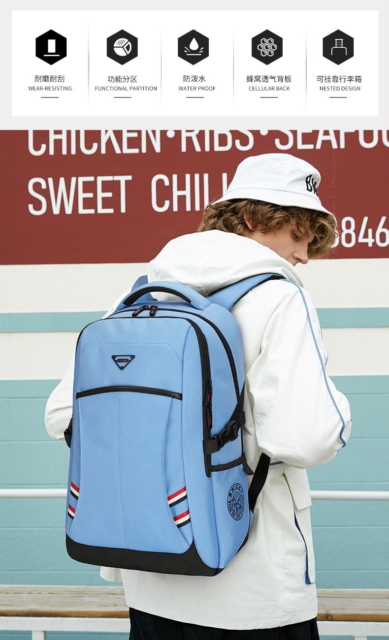 型 号:88115 尺 寸: 46*30*19CM(大号) 颜 色:黑色/蓝色/灰色 重 量:0.5kg 双肩背包:当代的青年人,正站在人生梦想的入口,期待属于新生力量的跨越式未来 愿你披荆斩棘,乘风破浪,到达梦想的彼岸追梦少年,永远在路上