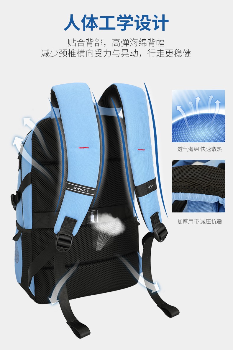 SWICKY瑞驰多功能休闲商务双肩包88115黑色大号