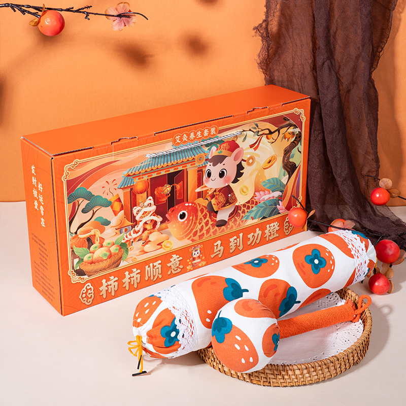 河南承夏柿柿顺意马到功橙艾草锤颈枕套装