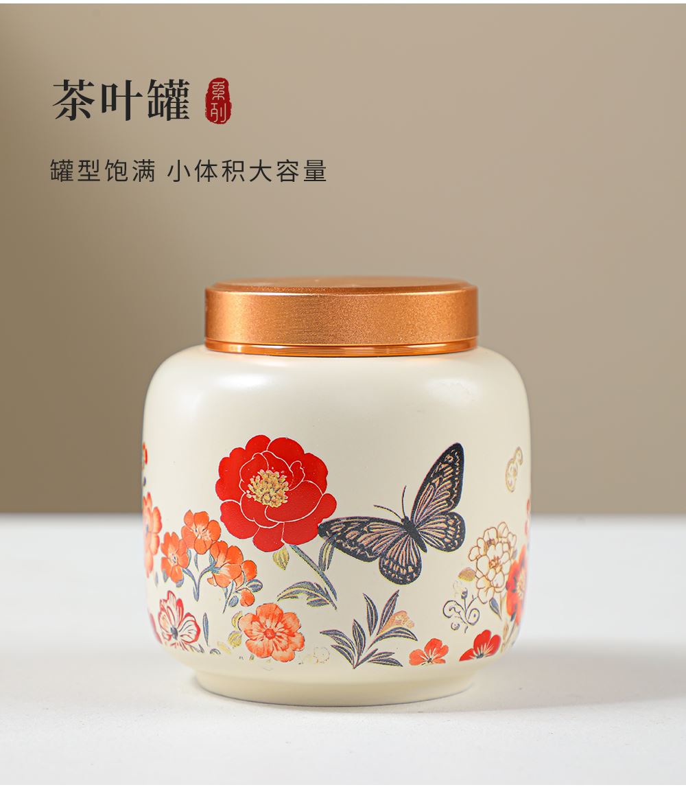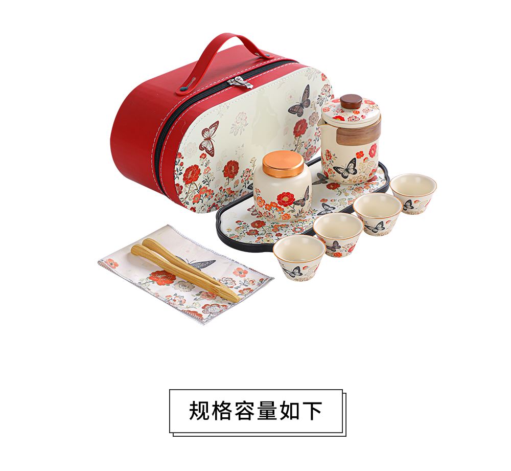 壶:12.5*8.3厘米 260ml 茶叶罐:7.5*7厘米 品茗杯:6.3*3.7厘米60ml 礼盒:30*14.5*13厘米 天然矿物釉,高温烧制无铅镉 ,花面清新,寓意美好,搭配礼盒包装,自用赠礼两宜。