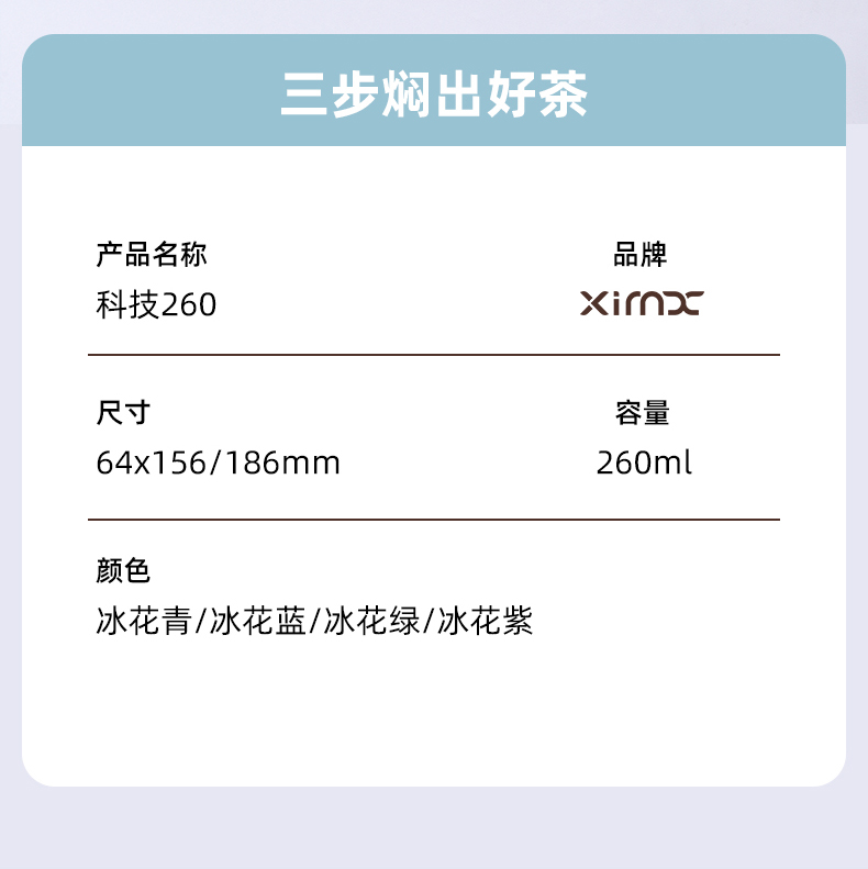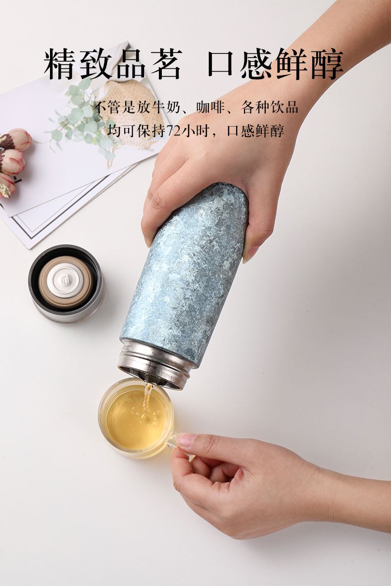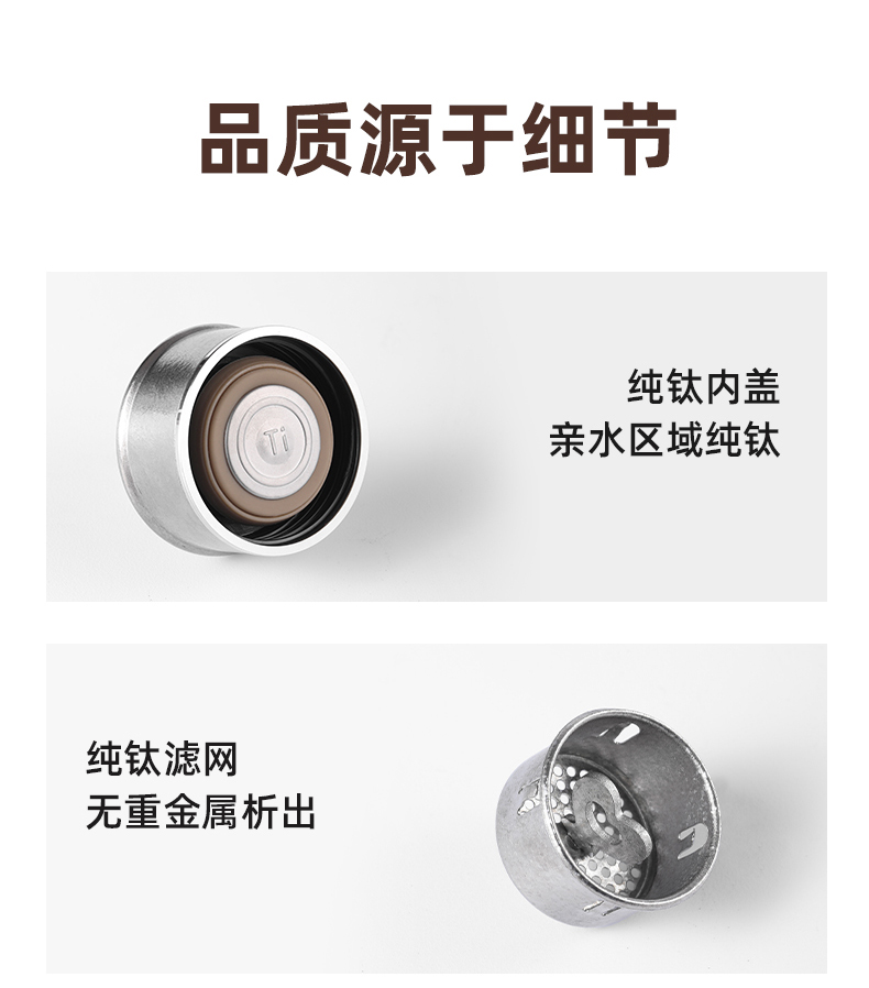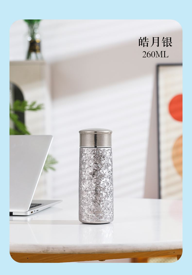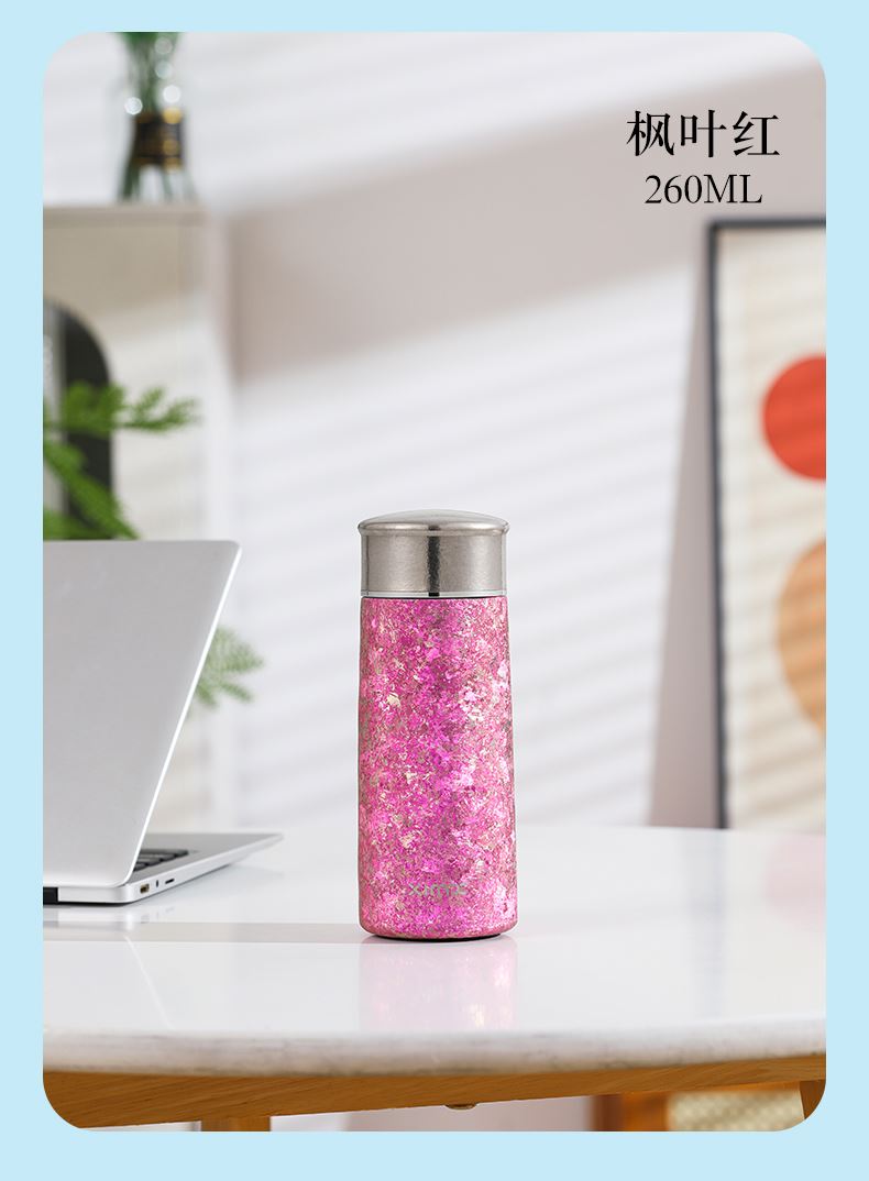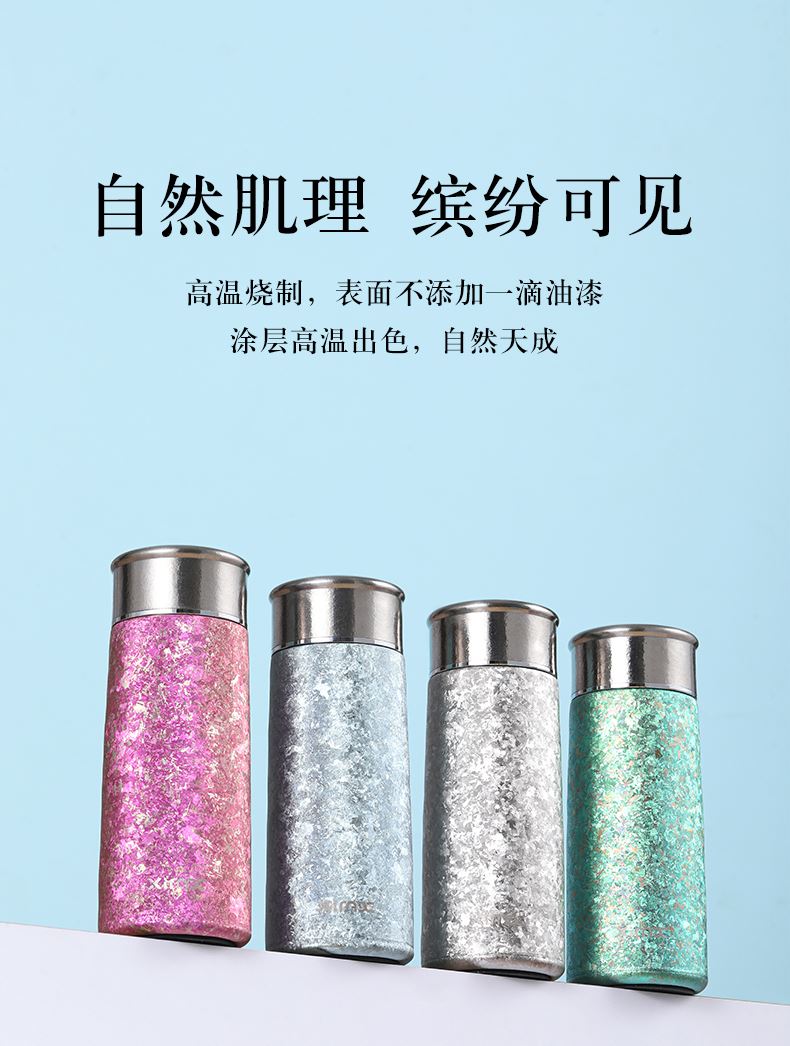 产品材质:钛 杯身样式:直身杯 产品容量:260ml 产品尺寸:65*200mm 颜色分类:孔雀蓝,紫色,冰花银,冰花蓝 ,绿色,冰花粉 高颜值,带茶水分隔,携带方便,适用于多种场合,冰花质感,磁吸款杯盖更方便。 无重金属析出、耐酸碱、耐腐蚀、不含磁、易清洁、抑制细菌保鲜时长可5-7天,杯身外观自然成色,不使用一滴颜料,不存在掉色、“铅”超标等问题
