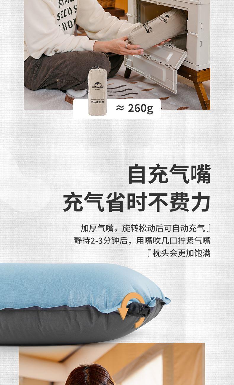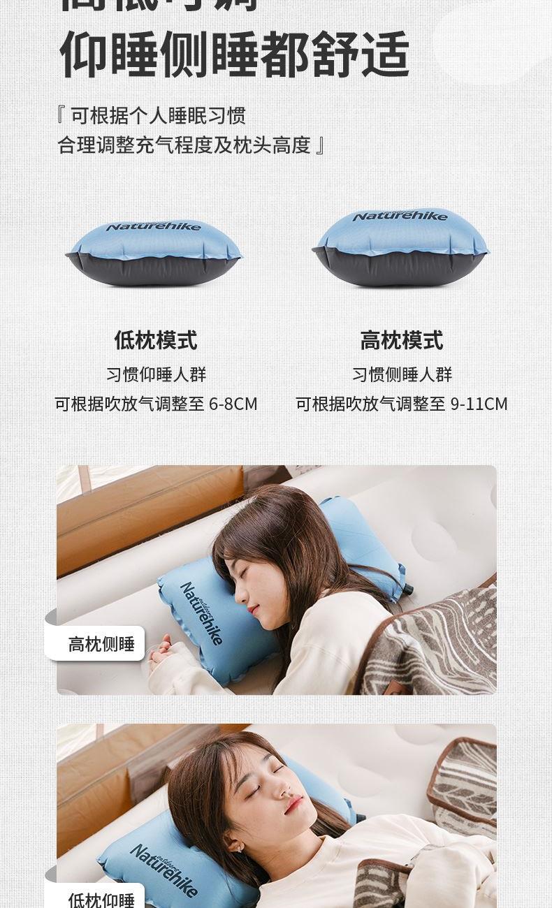 挪客自动充气枕头午休睡枕便携旅行旅游露营舒适护腰靠枕