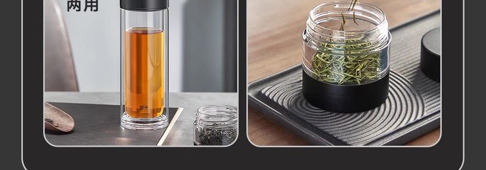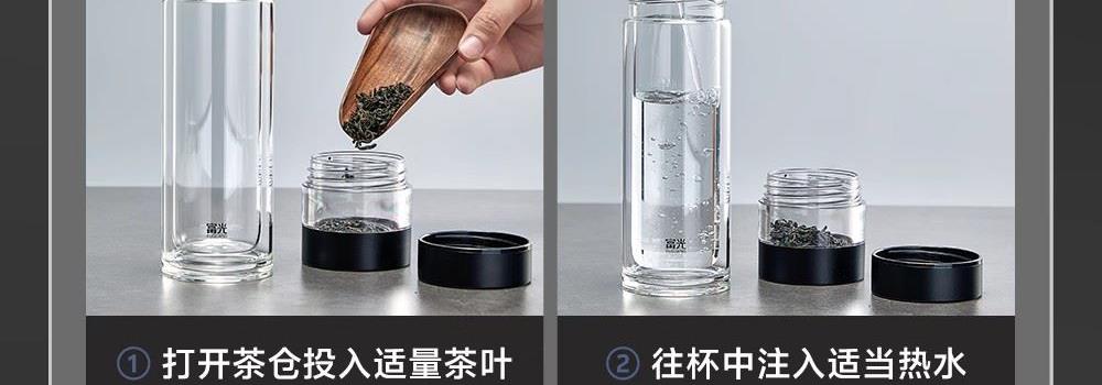 容量:300ml 颜色:灰色 蓝色 尺寸:65.5*232mm 材质:铂金级双层高硼硅,加厚一体成型杯底。 金额数磨砂质感杯盖,316L不锈钢,婴幼儿级Tritan独立茶仓。 两种泡茶方式自由选择,一杯两用,大小杯随意切换(去掉茶仓秒变随行小杯),一立一斜实现茶汤分离。 包装:单瓦盒