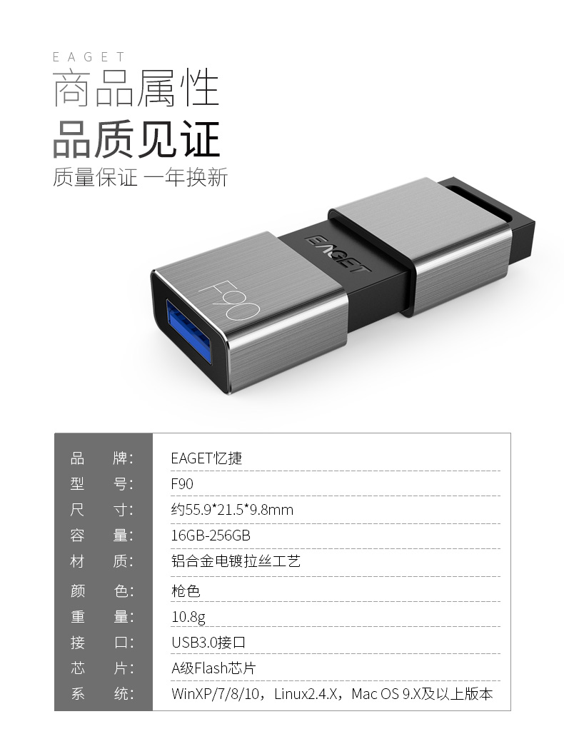 (EAGET)忆捷高速金属推拉式车载商务优盘F90-32G