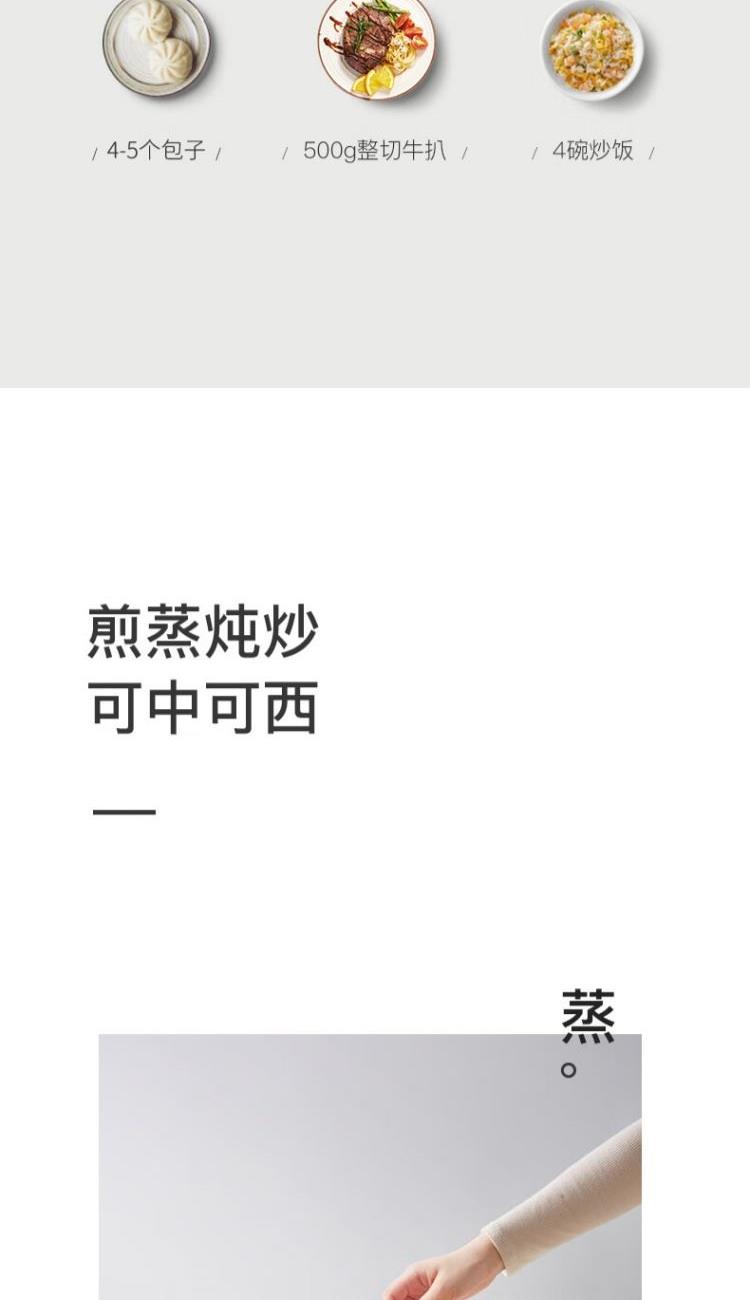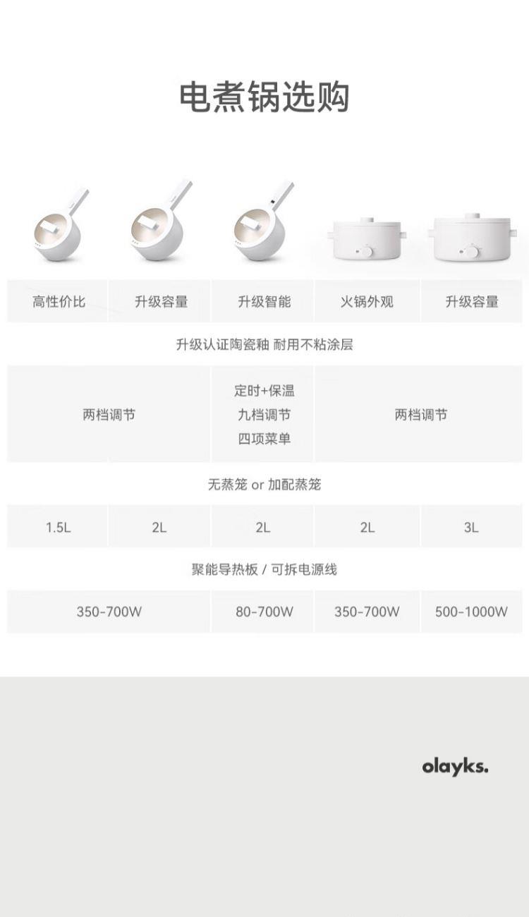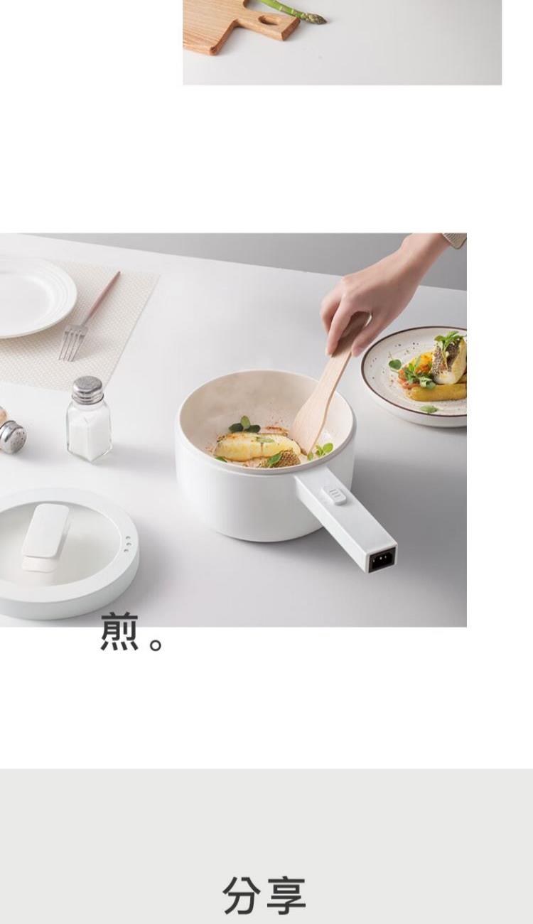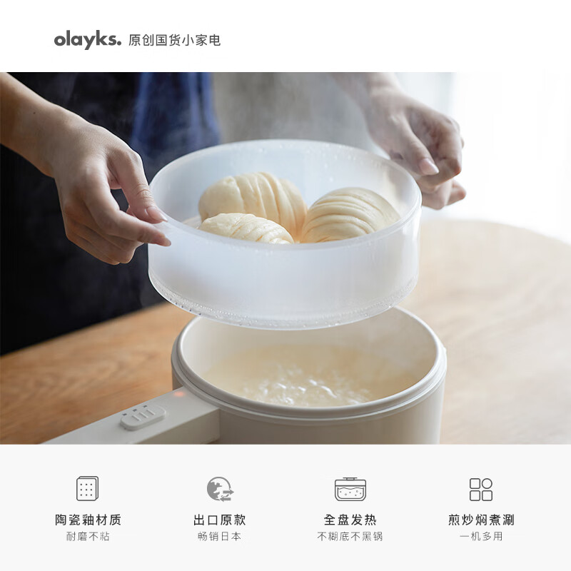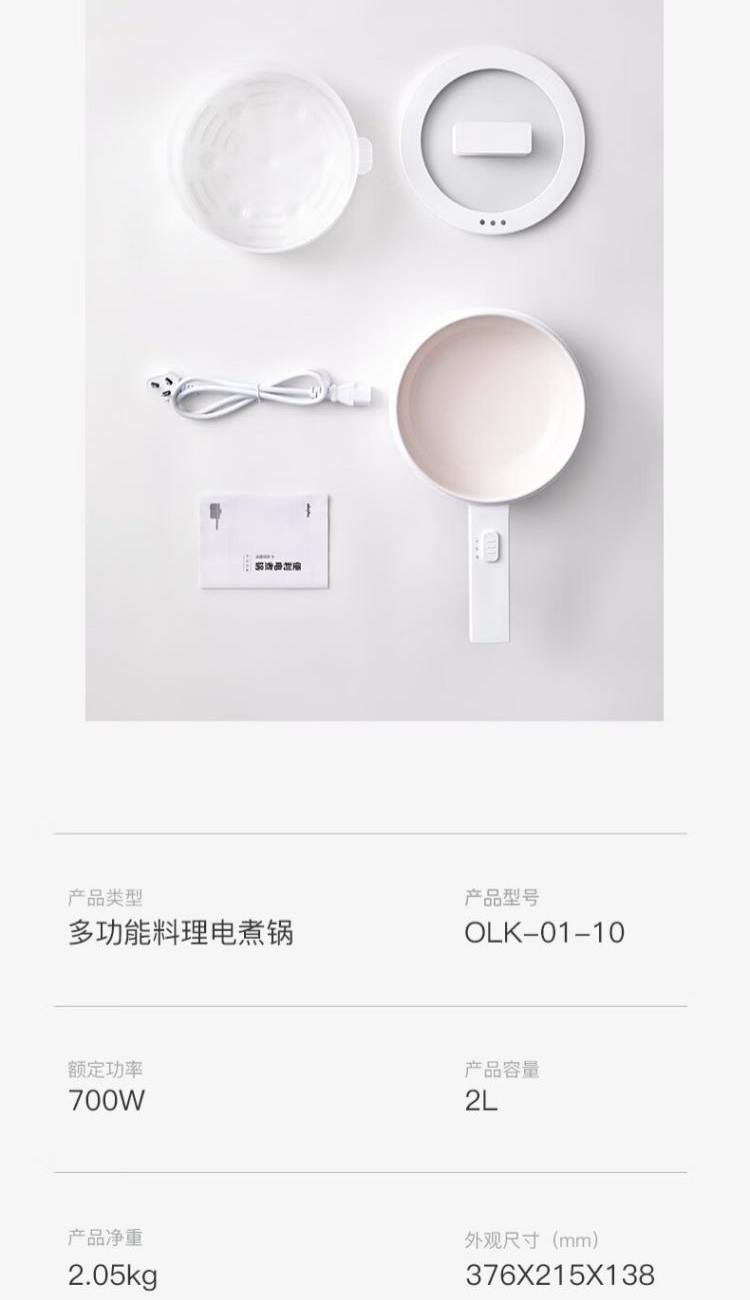 电煮锅:带蒸笼 颜色:陶白 容 量:2L 重量:1.35/2.05kg 额定功率:700W 产品尺寸:376*215*138mm 包装尺寸:462*267*158mm 1. 陶瓷釉内胆,导热快,不糊底 2. 安全易清洗,硬度8H无惧钢丝刷 3. 20cm大口径,锅深7cm,翻炒从容 4. 360°整圈发热,温度稳定,防干烧自动断电 5. 上蒸下煮,高透明食品级PP蒸笼(耐温180度)