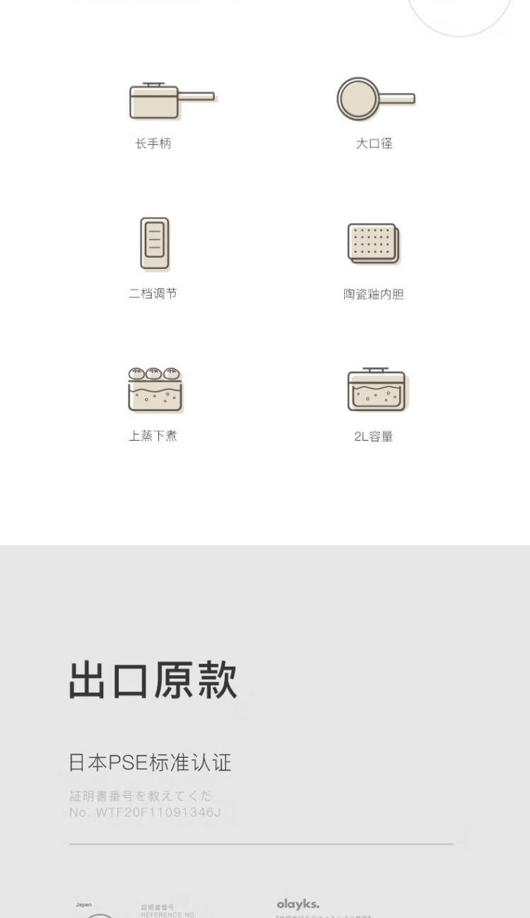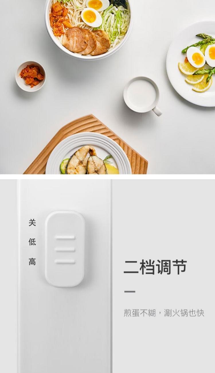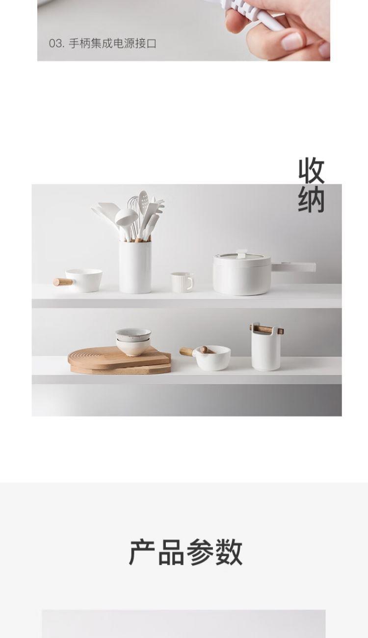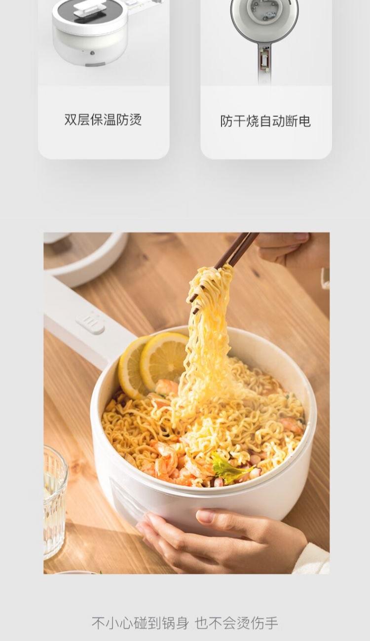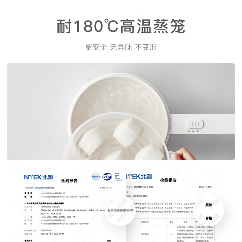 电煮锅:带蒸笼 颜色:陶白 容 量:2L 重量:1.35/2.05kg 额定功率:700W 产品尺寸:376*215*138mm 包装尺寸:462*267*158mm 1. 陶瓷釉内胆,导热快,不糊底 2. 安全易清洗,硬度8H无惧钢丝刷 3. 20cm大口径,锅深7cm,翻炒从容 4. 360°整圈发热,温度稳定,防干烧自动断电 5. 上蒸下煮,高透明食品级PP蒸笼(耐温180度)
